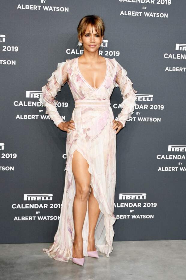Вчера был опубликован календарь Pirelli 2019 года, а затем главные герои с его страниц и объектива фотографа Альберта Уотсона — Летиция Каста, Джиджи Хадид, Сергей Полунин и другие — уже представили свое совместное детище в Милане. Джиджи — с уже более гламурной высокой прической — сменила уютный костюм на черное атласное платье со шлейфом и крупными оборками, а Летиция выбрала летящую моделт из шифона с широким серебряным поясом. Но больше всех поразила 52-летняя Холли Берри, которая появилась на вечере в струящемся творении от Aadnevik с романтичными рюшами, смелым декольте и высоким разрезом, подчеркнув свои точеные ноги.