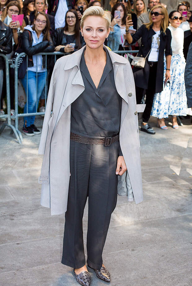 Но едва ли вы обратите на это внимание, изучив фотографии брюнетки. За что нужно сказать спасибо стилисту красавицы и по совместительству ее близкой подруге Джессике Малруни: та подбирает для монаршей особы наряды, которые садятся на ней как влитые. Вспомните джинсовое платье Carolina Herrera, которое Меган надела в конце июля: объемная юбка и широкий пояс создали эффект фигуры “песочные часы”, скрыв отсутствие женственных изгибов. В этом кроется основная формула стиля Меган: она регулярно носит платья с пышным низом, визуально делая бедра шире, а талию – уже. Также она предпочитает наряды, притягивающие взгляды к ногам. Поклонники до сих пор не могут забыть то короткое платье-смокинг, в котором Маркл появилась в начале сентября на одном из благотворительных мероприятий. И мы их понимаем: крайне сложно было поднять взгляд выше подола и к чему-либо придраться.Тип фигуры «Перевернутый треугольник». Княгиня Шарлен