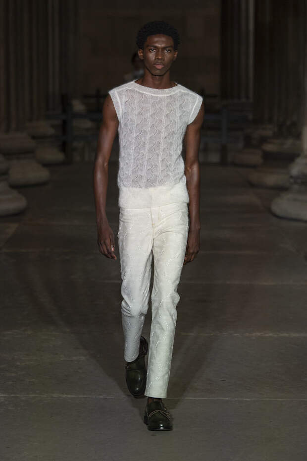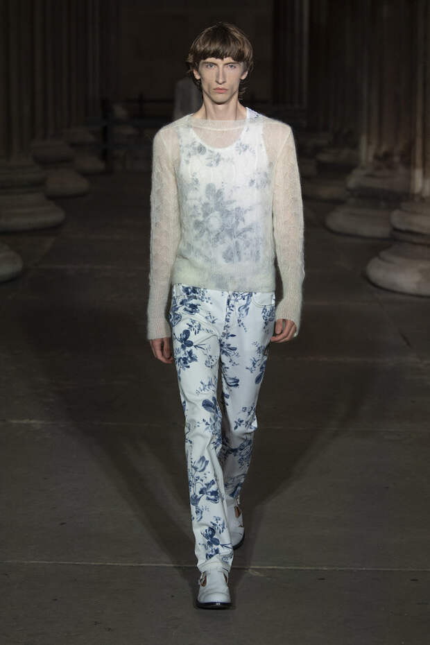 Юбилейную коллекцию дизайнер при этом посвятил сразу двум героиням — британской аристократке Оттолайн Моррелл и поэтессе и художнице Эдит Ситуэлл. Получилось благородно и, как всегда у дизайнера, в меру драматично. По словам дизайнера, его в этих женщинах привлекли эксцентричность и желание выделяться из толпы: «Они обе жили за пределами своего времени: Моррелл в 30-х носила платья эрвардинского периода, а Ситуэлл — средневековые».