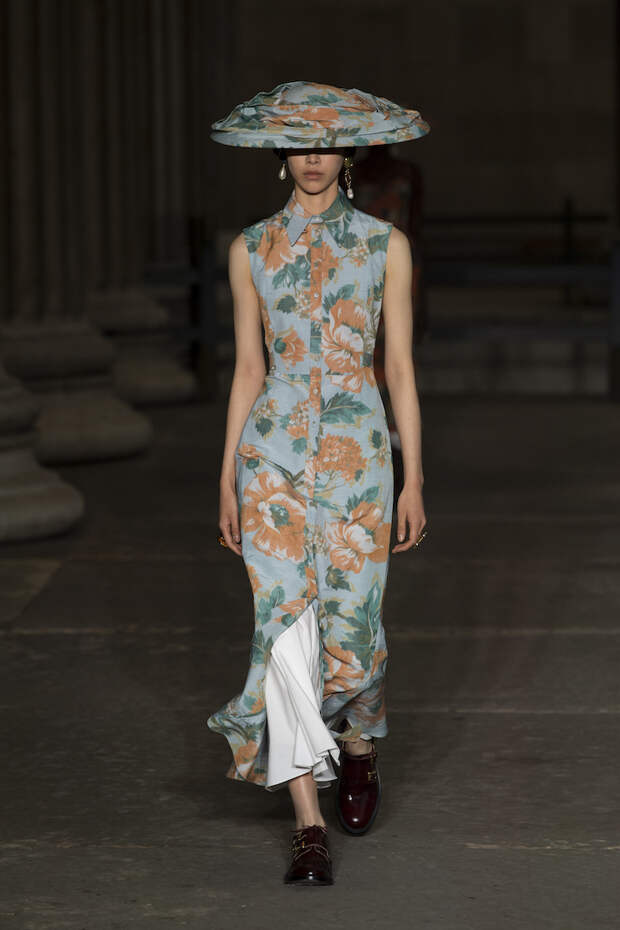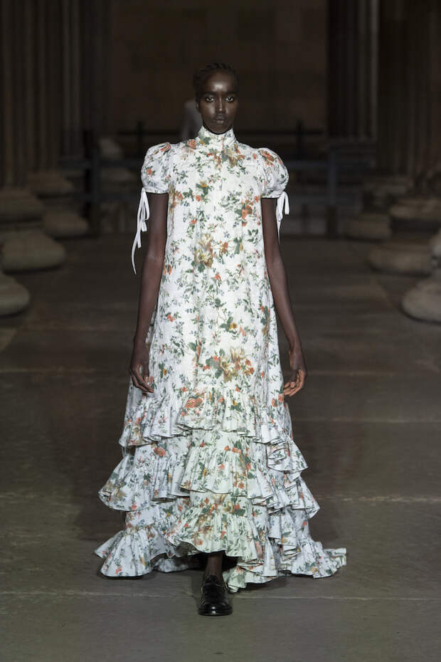 Бренду Erdem в этом году исполняется 15 лет — и в честь этой впечатляющей даты Эрдем Моралиоглу решил провести настоящий физический показ вместо скромной диджитал-презентации (впервые с момента начала пандемии!). Локация была выбрана знаковая — под стать круглой дате: шоу прошло в Британском музее.