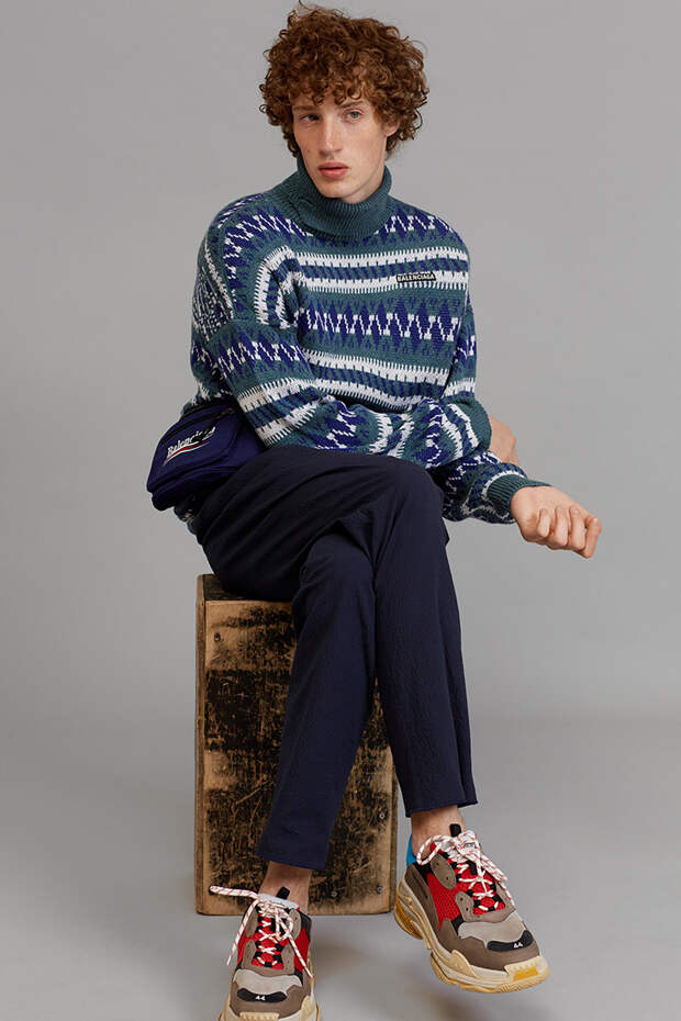 Свитер, сумка и кроссовки Balenciaga, брюки Fendi