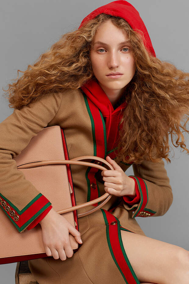 Худи Levi’s, пальто Gucci, сумка Christian Louboutin