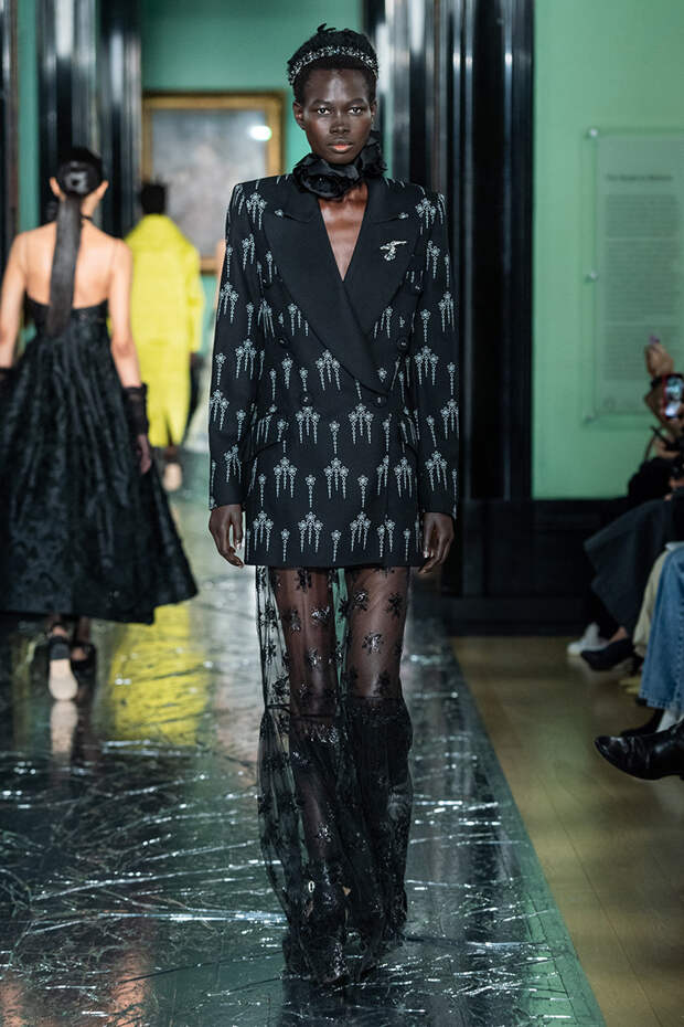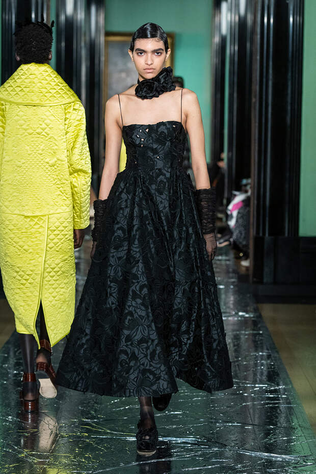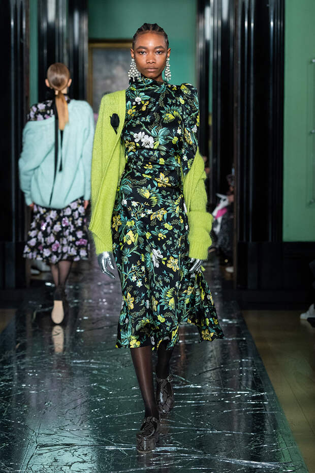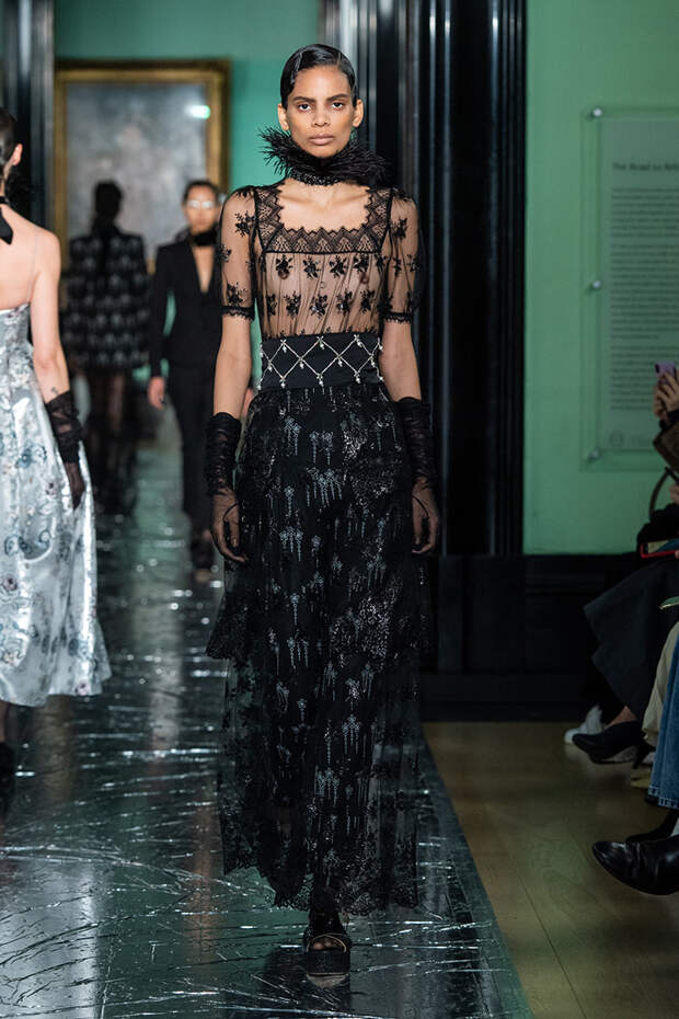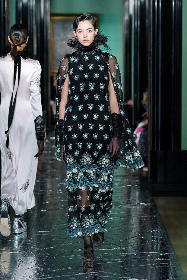 Эрдем Моралиглоу — тот еще весельчак. Его, как и многих британских дизайнеров, тянет в квещам по-викториански мрачным. Так что и зимой, и летом на его вещах цветут темные розы, задумчиво колышутся черные перья, а платья закрыты и не по-сегодняшнему скромны — исключительно в плане длины и вырезов, а не богатства декора.