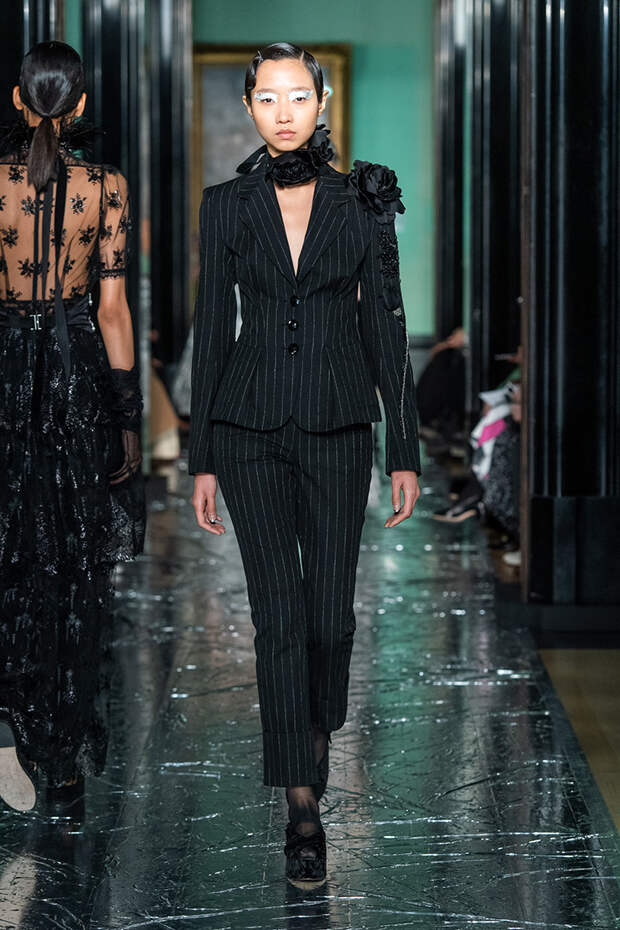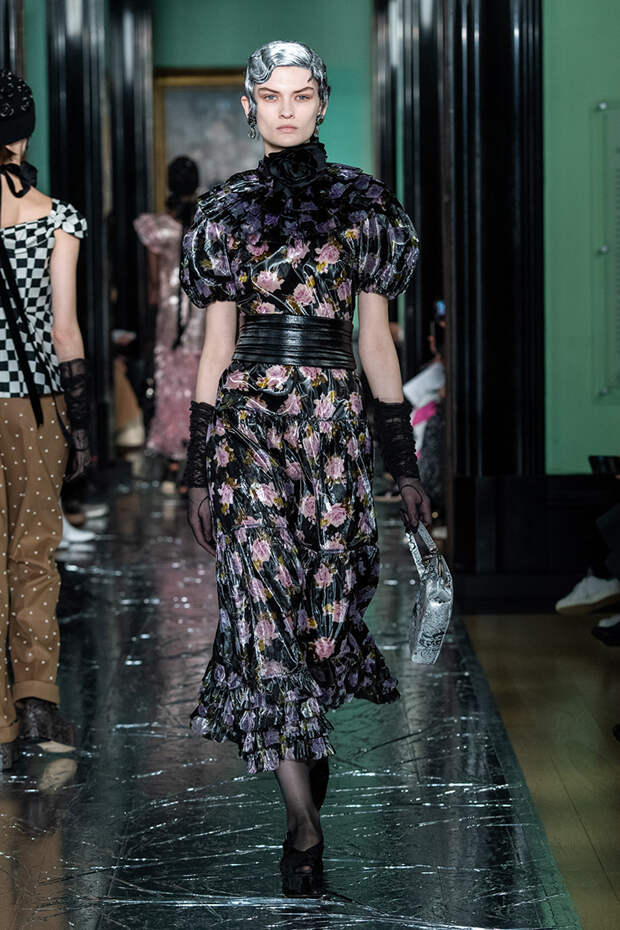 Потому что на отделку дизайнер не скупится никогда. Вот и на этот раз к просто цветочным принтам, представленным в коллекции во всем изобилии, добавились заодно узоры, вышитые жемчугом, искуственные розы, (разумеется, черные) аппликации, резные жаккарды, россыпи пайеток и не только. Так что, пусть настрой у дизайнера и неизменно мрачный, выглядит все неизменно красиво — и очень, очень нарядно.