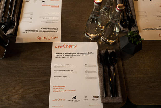 Накануне в ресторане Choice. Healthy Social Club прошла презентация благотворительного сет-меню. Его разработала Анна Ивченко совместно с благотворительным аукционом Meet For Charity, акцию же поддержал бренд Cadillac.