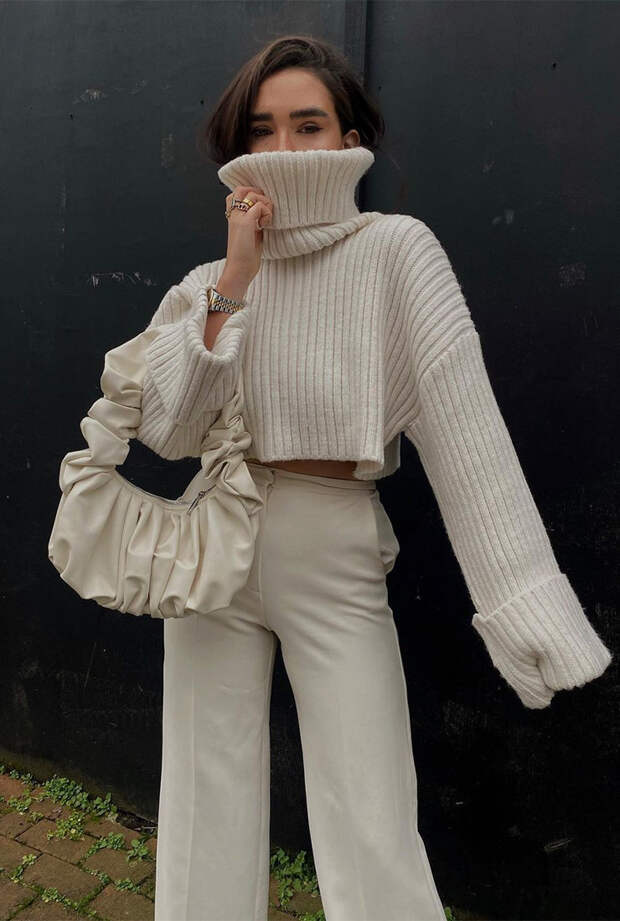 Несмотря на то, что акцентные в модном свитере – рукава, из кроя выходит, что весь удар приходится в район бедер. Хотя удар – это, конечно, громко сказано, но нижняя часть точно становится главным объектом внимания. Здесь главное – не переборщить, поэтому смело комбинируйте приталенный свитер (к примеру, от Moncler) с облегающими брюками со штрипками и ботильонами на киттен-хилл. Носить свитер оверсайз кроя (как у MSGM и Nanushka) рекомендуем с околоспортивными леггинсами и сапогами с широким голенищем. Обязательный аксессуар к подобному свитеру – браслет-кафф, который изящно подчеркнет запястье и приправит образ нотками шика. Выбрать среди множества дизайнерских свитеров «тот самый» – задача не из легких. Мы позаботились о вас заранее и собрали все самые лучшие – вам не захочется их снимать весь год.