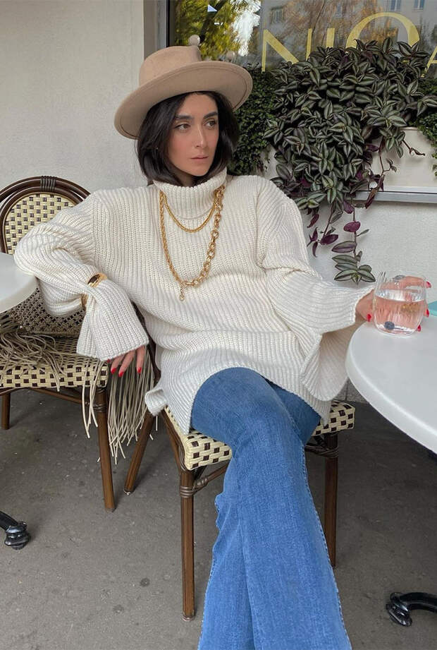 К примеру, свитеры с длинными расклешенными рукавами – идеальный вариант для тех, кто вечно мерзнет или попросту забывает дома варежки. В такие широкие рукава можно укутаться дважды – это ли не мечта для суровой русской зимы? Но и в теплые весенние дни этот свитер впишется беспрекословно. Его всегда можно накинуть на плечи и завязать в виде шарфа поверх любимого пальто – акцентные рукава точно не останутся незамеченными.