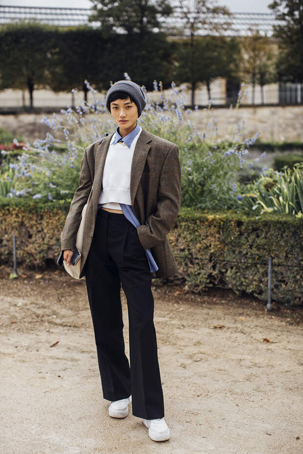 Этой осенью в моде все еще будут оставаться жакеты с мужскими плечами и оверсайз брюки — поэтому пока повремените откладывать вещи вашего бойфренда, папы или дедушки в дальний ящик.
