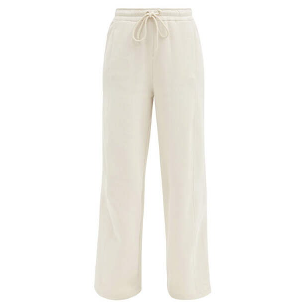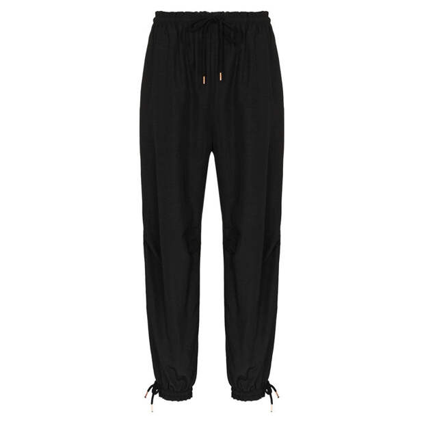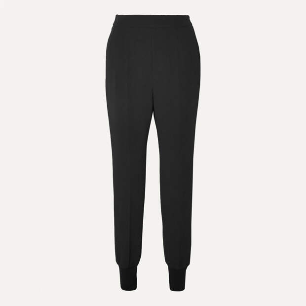 Тем более что джоггеры, например, уже давно перестали ассоциироваться исключительно с домашним и спортивным гардеробом. Главные модницы мира носят их по любому случаю с маскулинными жакетами, изящными блузками, уютным трикотажем, кроссовками, ботинками и шпильками. Тренировочные брюки — один из самых простых способов сбить градус нарядности любого лука — даже если на вас надет пиджак в золотых пайетках. И потом, время однообразных брюк для бега уже давно прошло: в этом сезоне дизайнеры предлагают нам сотни разных вариантов цвета, кроя и материалов. Зная, как легко запутаться в таком многообразии, мы решили вам помочь и отобрать самые сливки — 10 самых красивых и стильных вариантов, которые подойдут не только для пробежки и очень долго не выйдут из моды. Самый расслабленный и уютный выбор нашелся у S Max Mara — кремовые брюки палаццо с поясом на кулиске отлично будут смотреться с мягким объемным трикотажем в скандинавском стиле, например, со свитером с косами. Самая буквальная интерпретация — у T by Alexander Wang: классические трикотажные джоггеры с манжетами в нежном оттенке пудры лучше всего подойдут под массивные белые кроссовки.