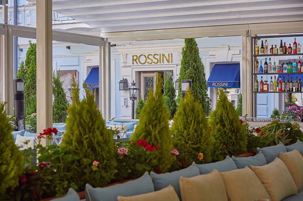 С долгожданным снятием ограничений Rossini объявили об открытии летней веранды, состоящей из самой террасы со столиками и баром и открытой лужайкой, где можно расположиться под зонтиком с бокалом игристого и закусками в камерной компании.
