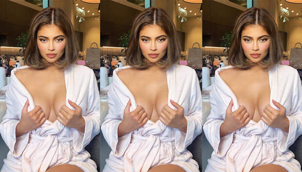 Вырез халата бесцеремонно обнажил грудь Кайли, а сама юная экс-миллиардерша лишь небрежно придерживала махровую ткань. Смело, но вполне в духе Кардашьян-Дженнер.