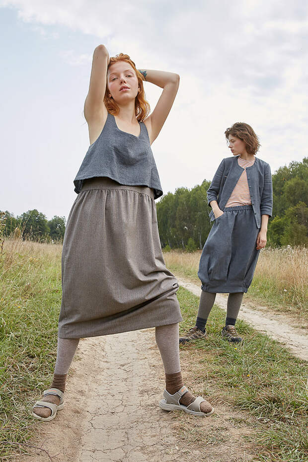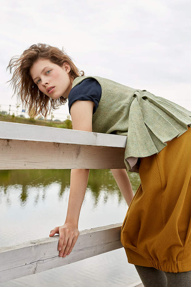 Даже самые привычные вещи могут заиграть по-новому, если найти им неожиданное применение. Например, как в новом лукбуке дизайнера молодой московской марки Objet! Оксаны Пертель: здесь модели позируют в расстегнутых сарафанах, надетых поверх мешковатых юбок и топов, и приталенных жилетах, использованных вместо блузок.