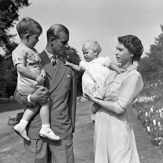 Cвоего отца, принца Филиппа, принц Уэльский поздравил архивной черно-белой фотографией, сделанной в далеком 1951 году на территории резиденции Кларенс-хаус. На снимке также присутствует молодая королева Елизавета, которая несет на руках малышку — принцессу Анну.