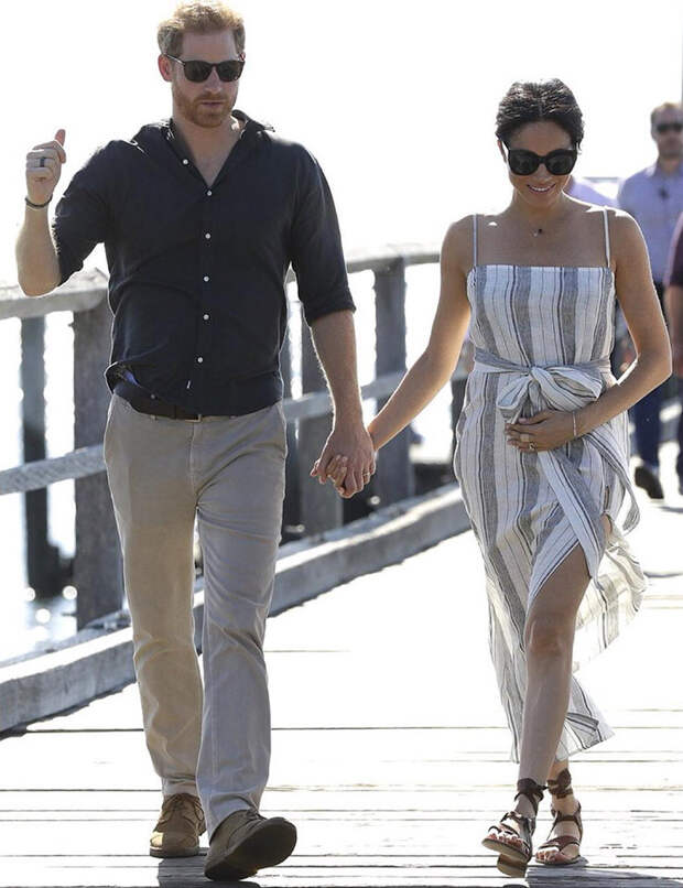 Меган Маркл не раз упрекали за любовь к дорогим брендам: за первые месяцы замужества она примерила нарядов на 1 миллион долларов. Кажется, поводов придираться к модной герцогине теперь у завистников не найдется. Во время поездки на остров Фрейзер Меган сменила два платья: красное в белый горошек & Other Stories и льяное в широкую полоску эко-марки Reformation.