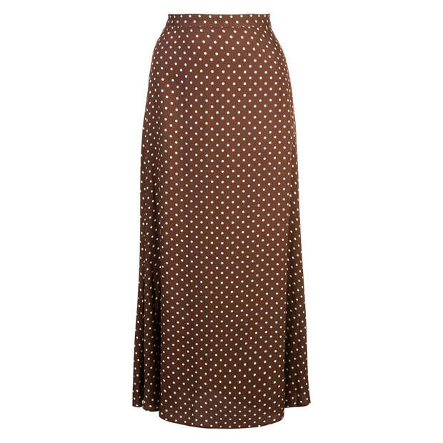 Но можно выбрать и юбку из розового шелка, атласа или сделать ставку на вещи в горох, которые точно никогда не выйдут из моды.