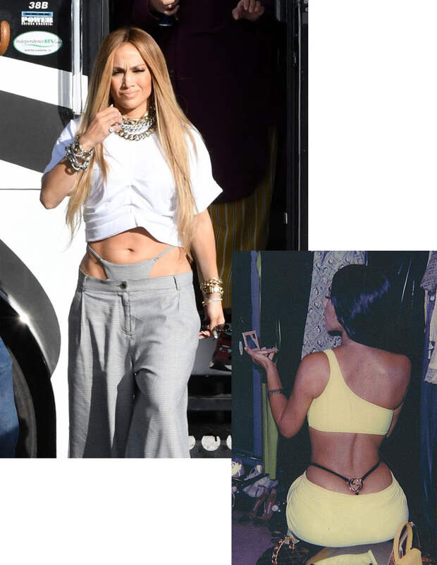 Брендированные резинки от трусов, виднеющиеся над поясом брюк — находка времен 90-х, и таким никого сегодня не удивишь. А вот стринги, задорно торчащие из штанов, — все еще вызов. Хотя родилось это стилистическое решение не так уж давно: это один из ярких моментов и без того незабываемого стиля нулевых. И называют тесемки трусиков, торчащие из-под одежды, G-string или whale tales. Выглядывать они должны не обязательно из-под штанов — это просто самый популярный вариант: так ходили еще Бритни Спирc и Кристина Агилера в золотые годы своей слава. Могут стринги сочетаться и с платьем с низким вырезом на спине. Здесь у нас уже другая role model, и не кто-нибудь, а Джиллиан Андерсон — ее выход в 2001 году на ковровую дорожку в черных очках и длинном черном платье с открытой спиной мы не забываем до сих пор. Из низкого выреза выглядывали черные сетчатые стринги — а из них еще и белая этикетка, которая только добавляла обаяния этому выходу Андерсон.
