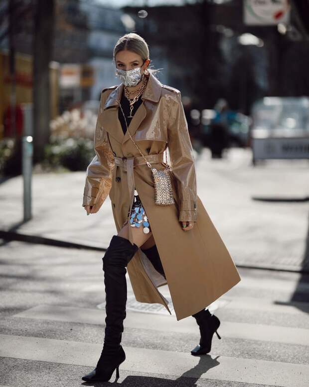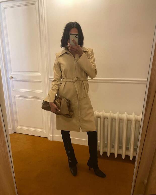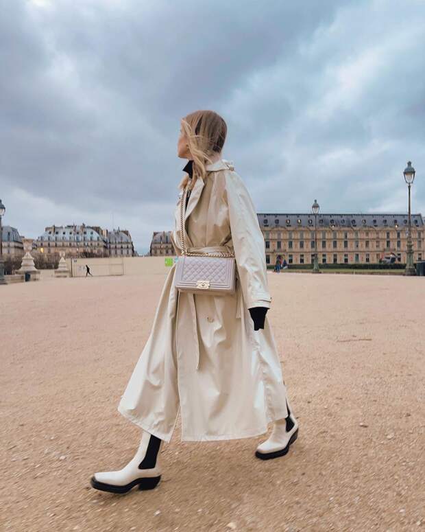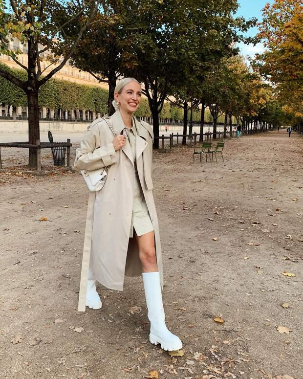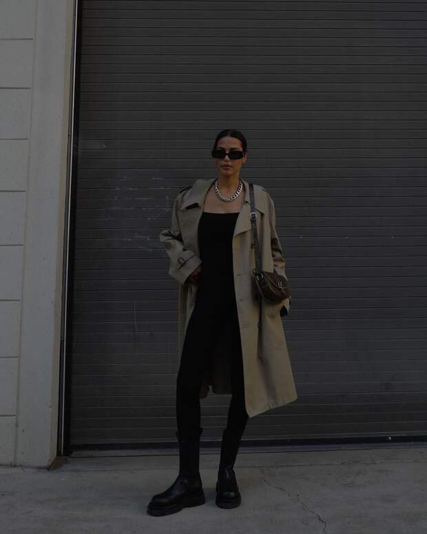 Еще одно беспроигрышное комбо — тренч + сапоги. Желательно ботфорты — причем как сексуальные сапоги-чулки на шпильке, так и более повседневные опции на плоском ходу. Они также моментально добавят образу остроты и сделают его куда более интригующим. Грубые ботинки со своей ролью тоже отлично справятся — и добавят луку немного контраста.