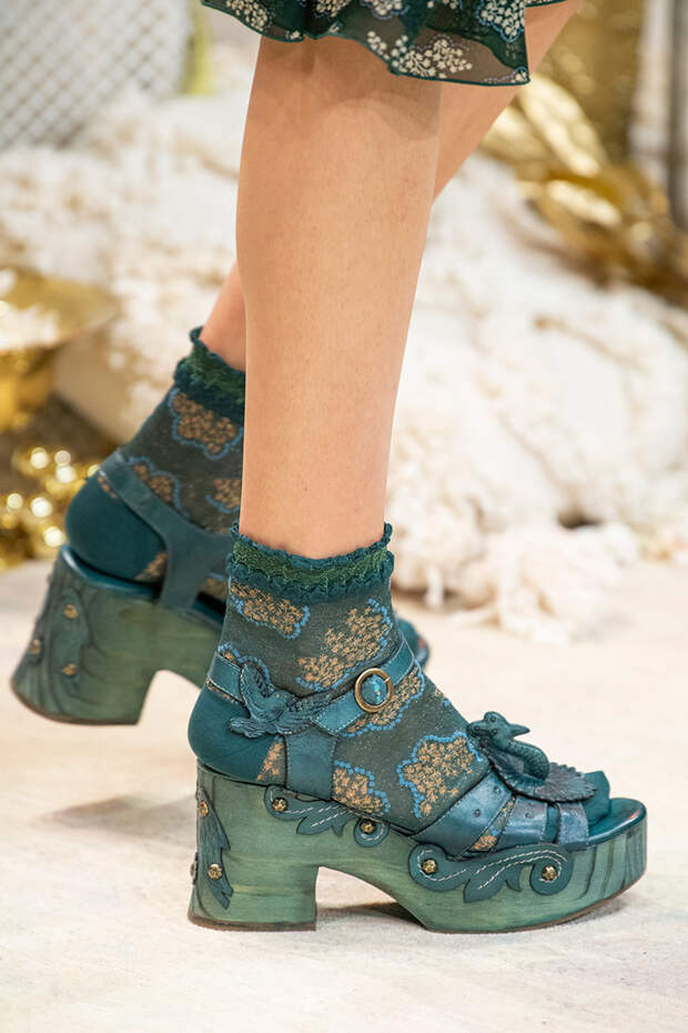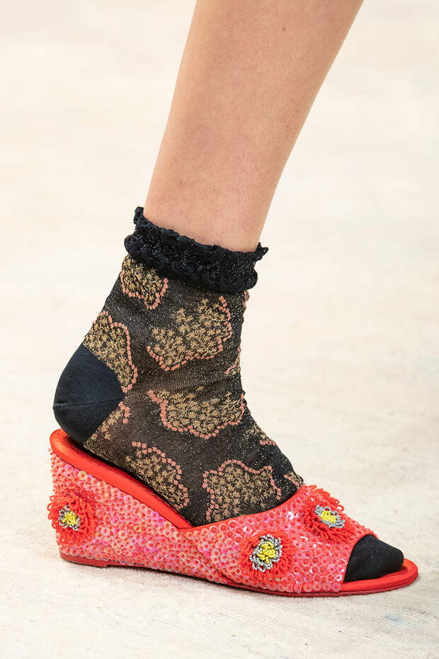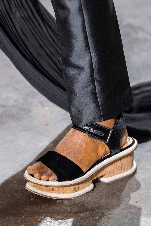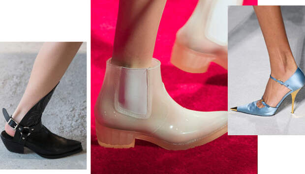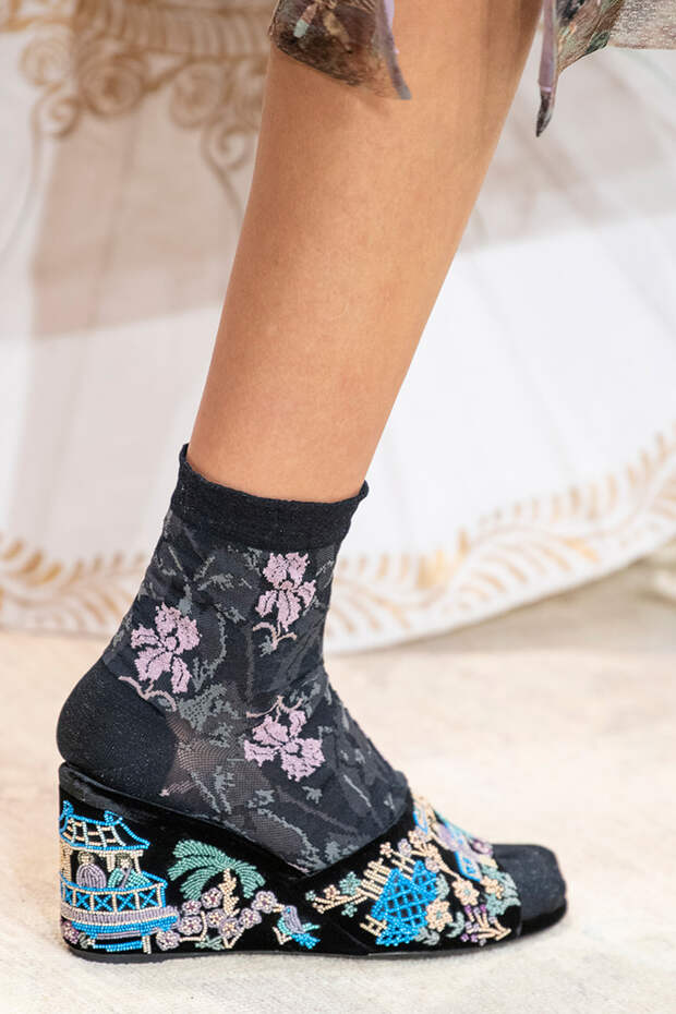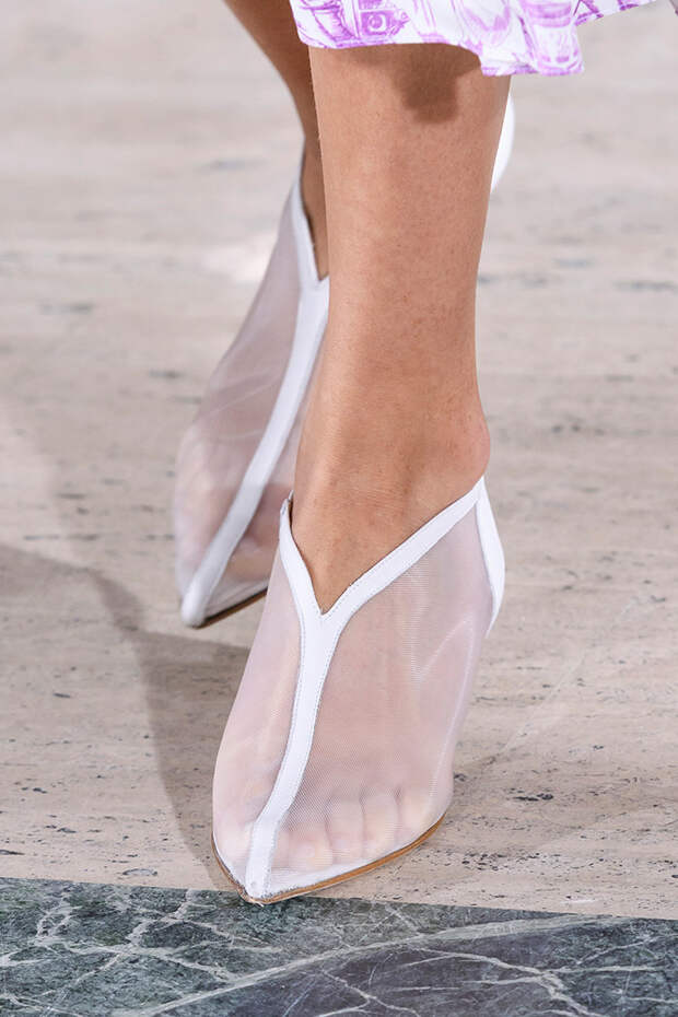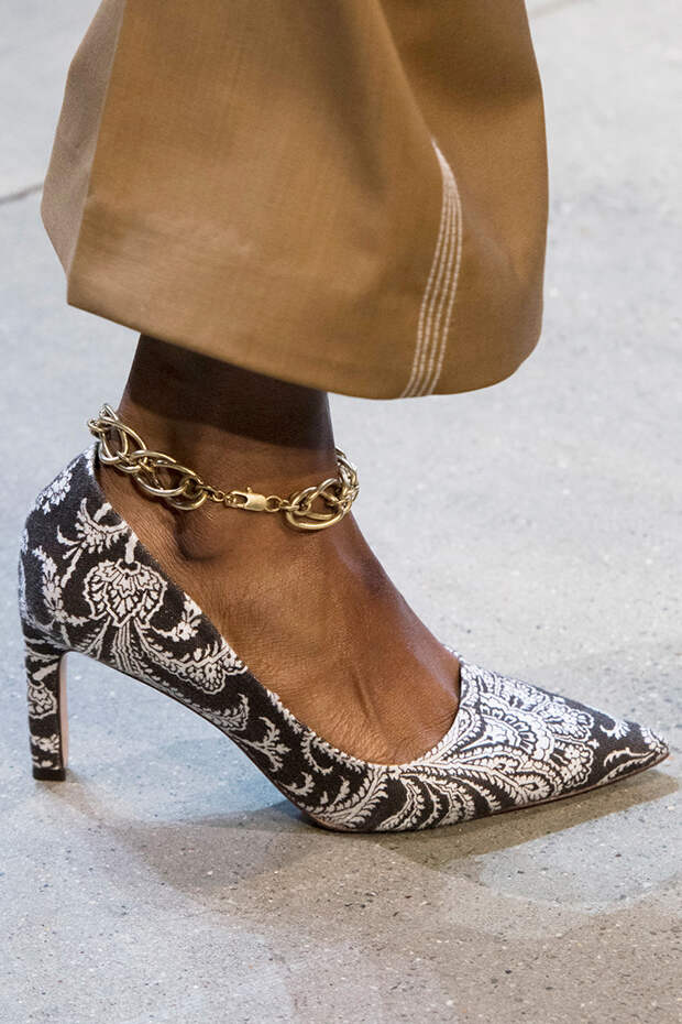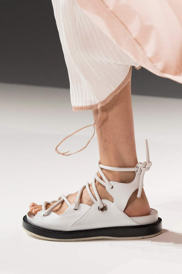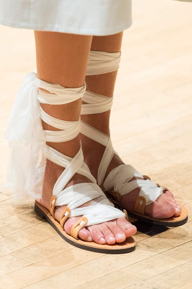 Туфли на шнуровке, с вырезами, вытянутым квадратным носом, богатым декором из веревок, перьев, широких ремешков и завязок в виде платков — только несколько деталей из всего разнообразия, которое предложили дизайнеры. Теперь обувь может стать не просто дополнением образа, но его центральной частью.