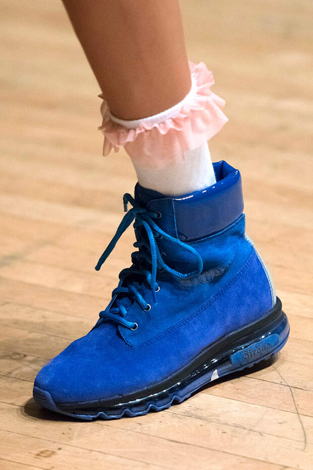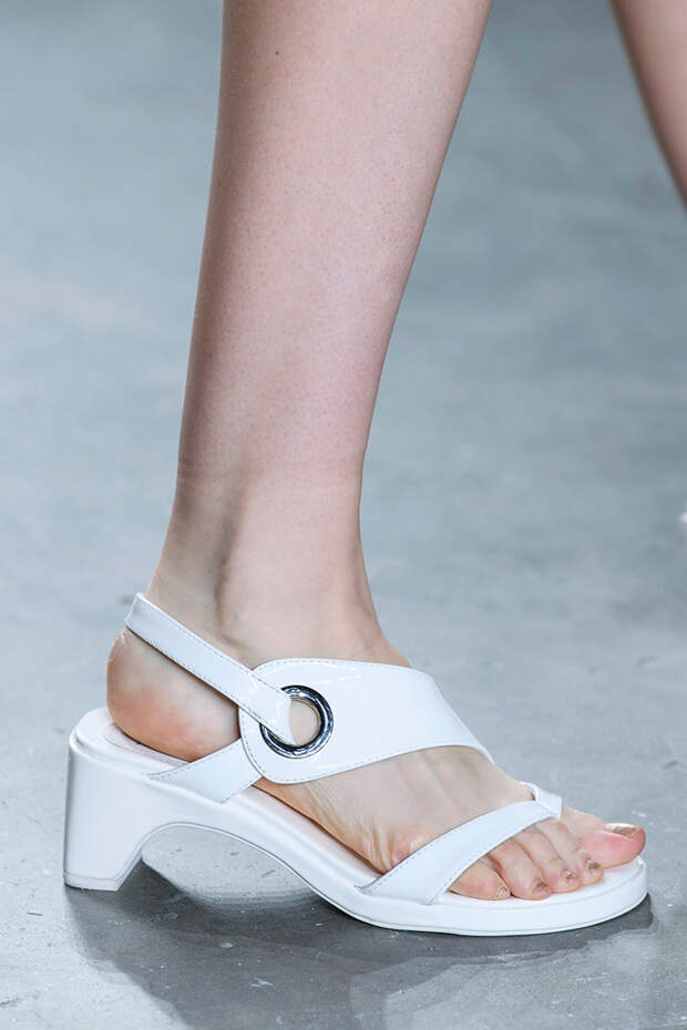 Прошедшая Неделя моды в Нью-Йорке показала, что излишество и необычные формы в обуви теснят минимализм. Против лаконичных туфель, сандалий и ботильонов светлых оттенков Tibi и Boss выступают прозрачные ботфорты Jeremy Scott, украшенные глиттером, а также босоножки с массивным каблуком и анималистическим принтом Christian Siriano и китчевые лодочки Tom Ford из атласа.