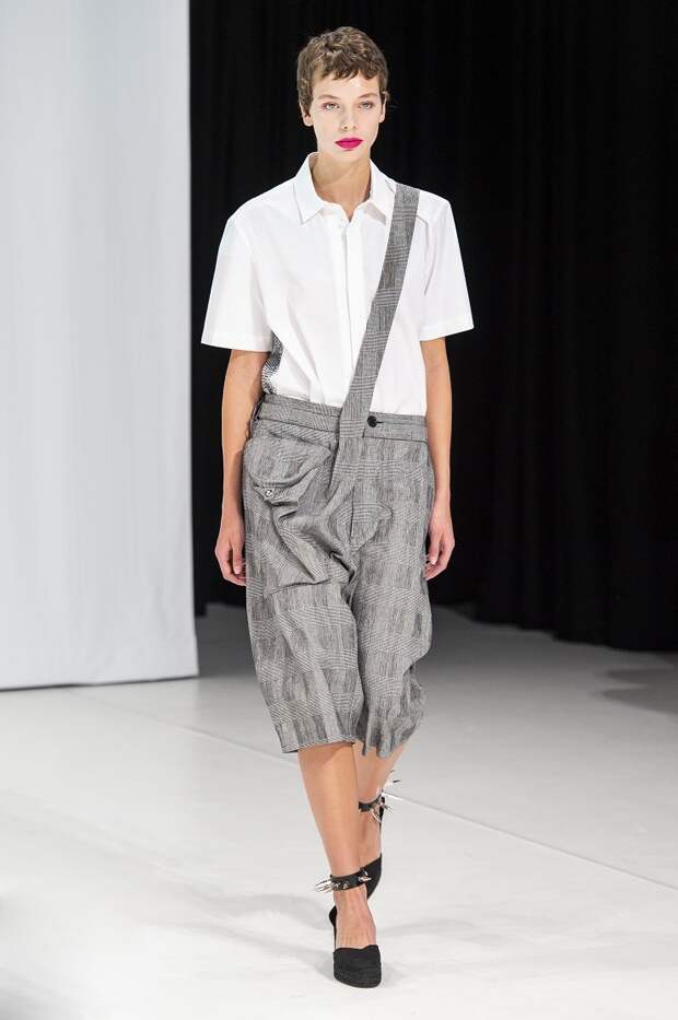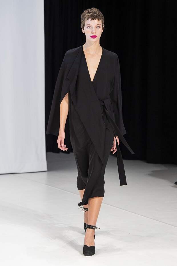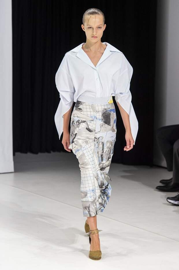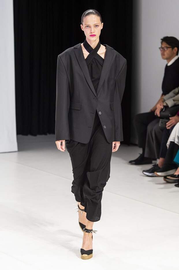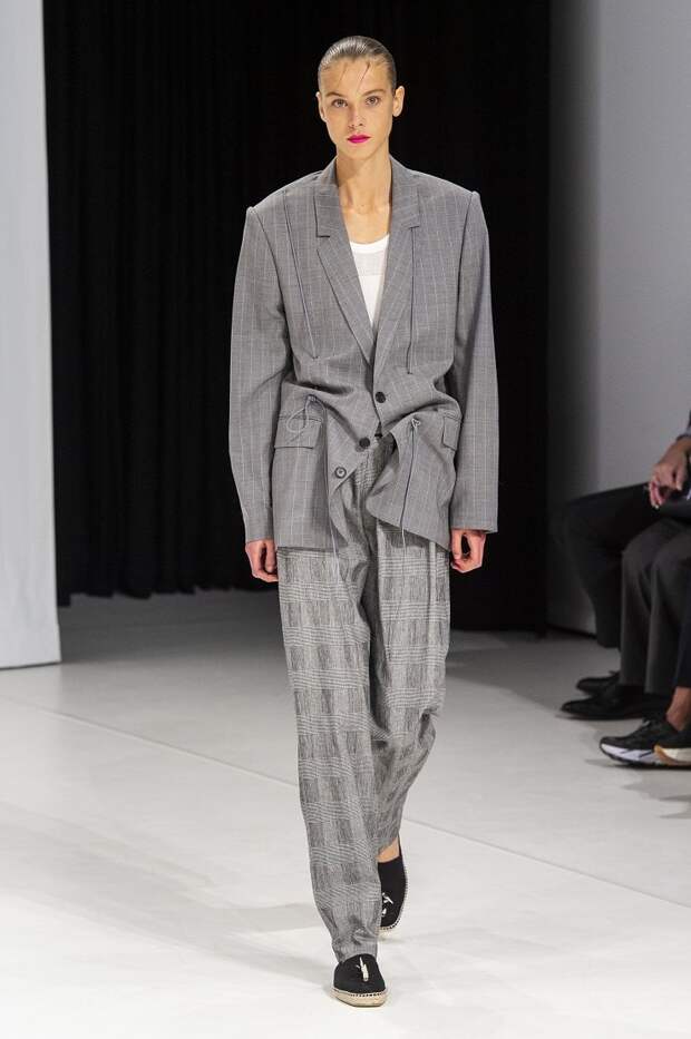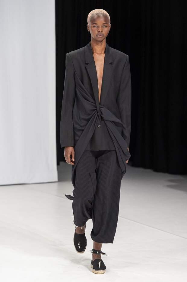 Хуссейн Чалаян презентовал весенне-летнюю коллекцию, в которую вошло великое множество базовых офисных вещей, переосмысленных на новый лад. Привычные брючные костюмы, классические рубашки и строгие платья заиграли по-новому за счет мешковатых фасонов, ассиметричного кроя и фантазийных драпировок.