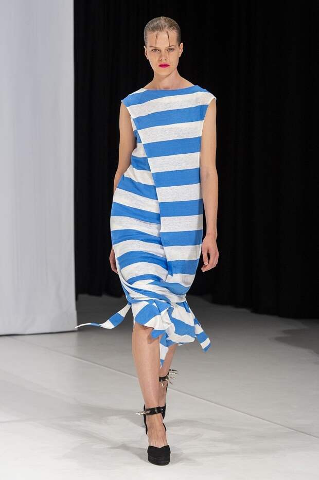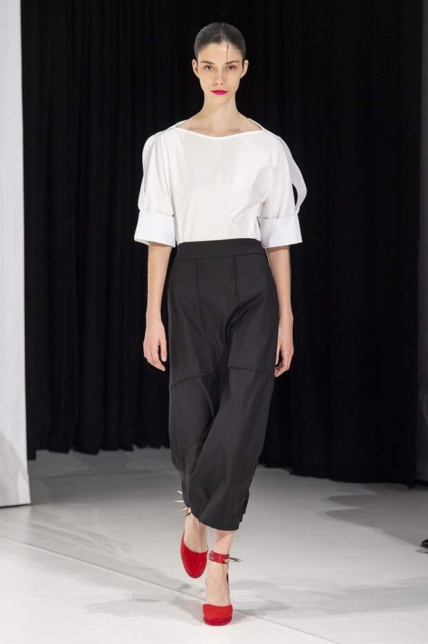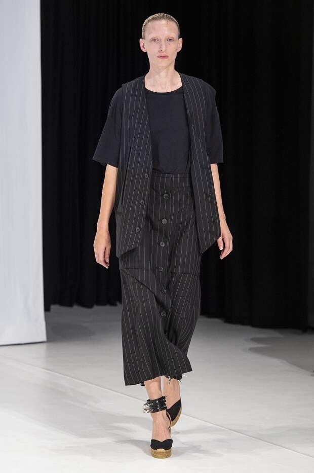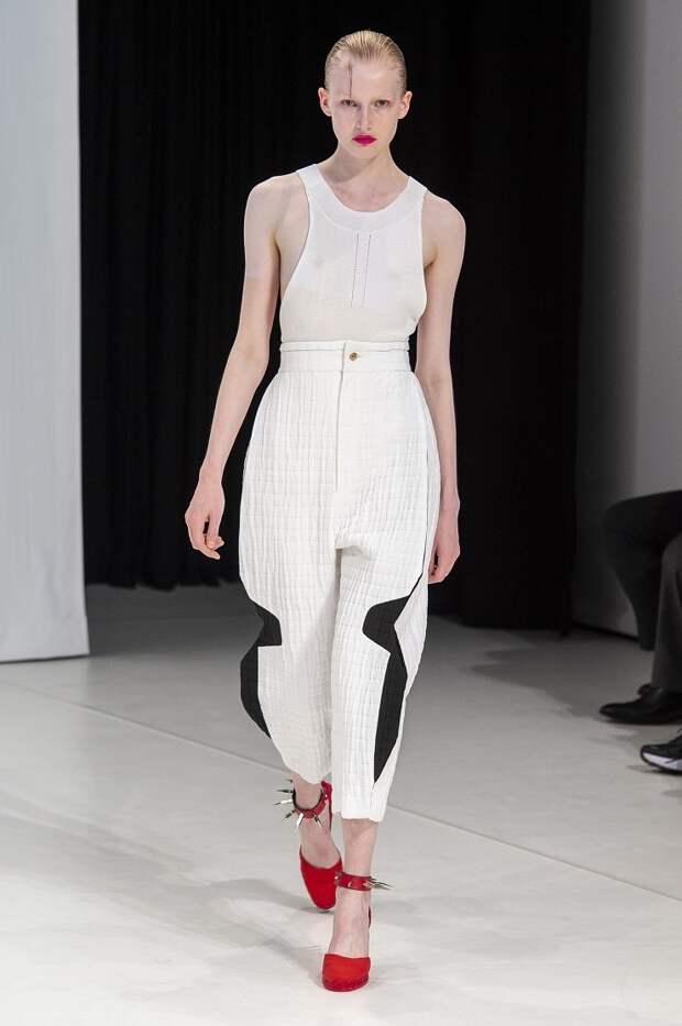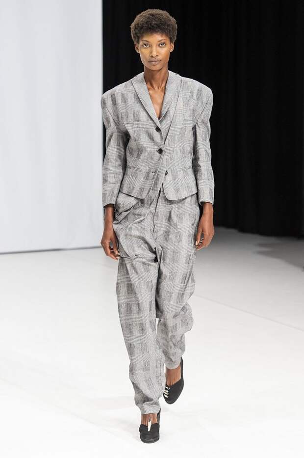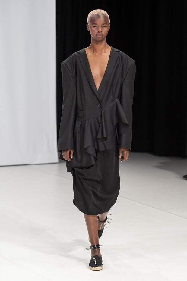 Хуссейн Чалаян презентовал весенне-летнюю коллекцию, в которую вошло великое множество базовых офисных вещей, переосмысленных на новый лад. Привычные брючные костюмы, классические рубашки и строгие платья заиграли по-новому за счет мешковатых фасонов, ассиметричного кроя и фантазийных драпировок.