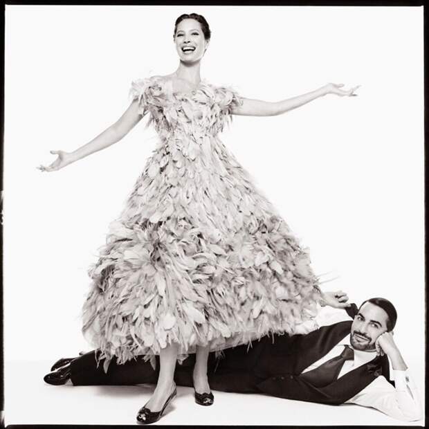 Очередная ступенька на пути к успеху – новая рекламная кампания Marc Jacobs, над созданием которой работала по-настоящему звездная команда: британская стилистка Кэти Гранд и легендарный фотограф Стивен Мейзел. На черно-белых снимках запечатлен сам Марк и его муза – супермодель Кристи Тарлингтон. Одетая в роскошные платья из перьев и десятков метров шелка, Кристи похожа на манекенщиц из архивных съемок Harper’s Bazaar времен Дианы Вриланд.