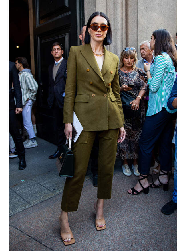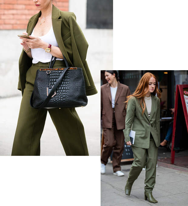 Брючный костюм цвета хаки — обязательная покупка сезона
