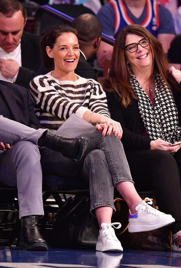 Кэти Холмс накануне днем посетила игру баскетбольных команд Вашингтон Уизардс и Нью-Йорк Никс. Папарацци запечатлели актрису на стадионе, эмоционально болеющую за любимых спортсменов. Наряд для этого звезда выбрала более чем подходящий: серые скинни (отличная альтернатива наскучившим черным!