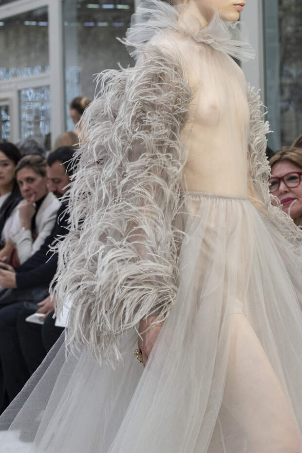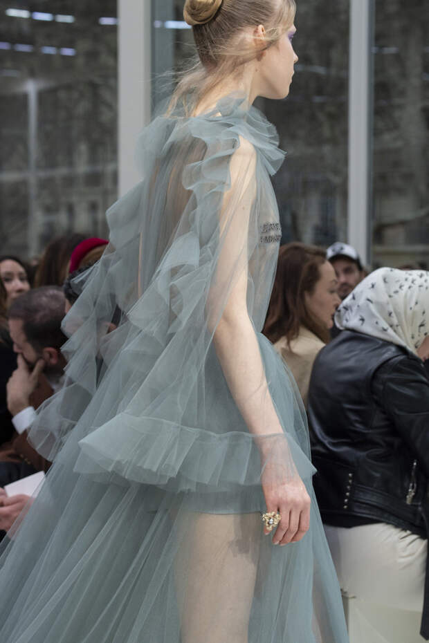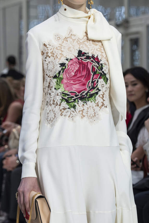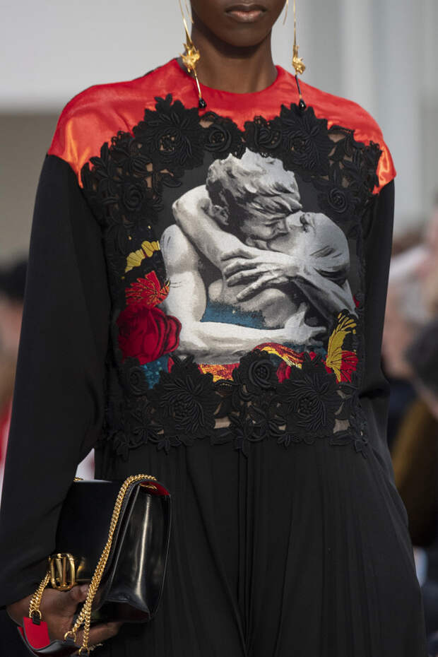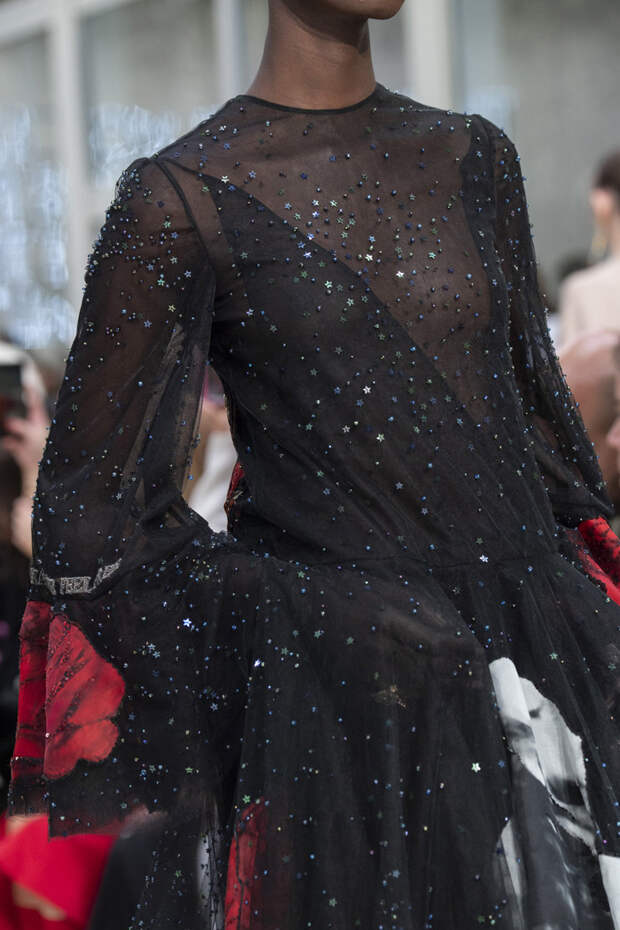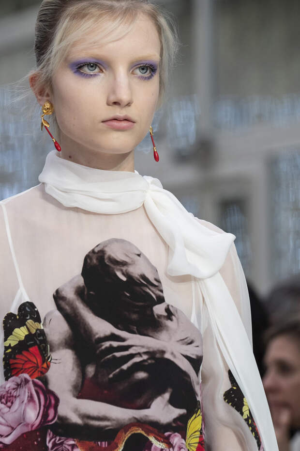Вчерашний показ Valentino до мих пор не выходит у нас из головы. В качестве декорации Пьерпаоло Пиччоли использовал работу художника Роберта Монтгомери, — святящуюся надпись "The people you love become ghosts inside you and like this you keep them alive" — в качестве саундтрека — стихи о любви. А какие-то романтичные строки заодно вынес и на одежду: платья, юбки и даже шубы.