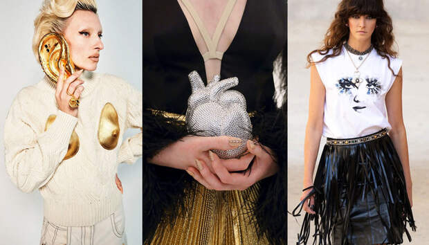 Оно и понятно: сюрреализм и Schiaparelli — практически синонимы. Сама основательница Дома Эльза Скиапарелли была для моды примерно тем же, чем для живописи — Дали и Магритт. С первым, как известно, она к тому же близко дружила и часто сотрудничала: всем известные шляпка-туфелька и платье-лобстер — плод их коллективных усилий. Так что здесь вопросов не возникает. Скорее было бы странно, если бы всего этого в коллекции не оказалось. Интереснее было то, что в своих изысканиях нынешний креативный директор почтенной марки оказался вовсе не одинок.