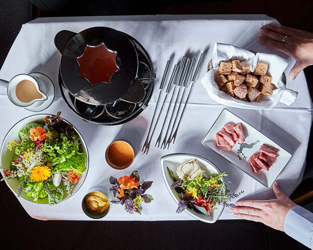 - The Kreuther Fondue Stube. Деревянные столы, низкий потолок, в камине потрескивают дрова: с ноября по март, когда за окном непогода, в The Kreuther Fondue Stube отогревают отдыхающих, угощая фондю и домашними ликерами.