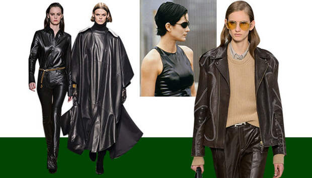 Посмотрите на модель с показа Alberta Ferretti, которая вышагивала в огромном кожаном кейпе, — она могла бы быть главной героиней вестерна. А модель с шоу Max Mara, которая примерила длинную кожаную юбку с кожаной рубашкой и ремнем в придачу, будто иронизирует над тем, что такой же наряд мог быть сделан из кружева и рюшей. Девушки с показа Alexander Wang — почти копии персонажа Тринити из "Матрицы" в этих лихих кожаных пальто, юбках и жакетах, облегающих фигуру. Выбор, как всегда, за вами, принять ли этот посыл.