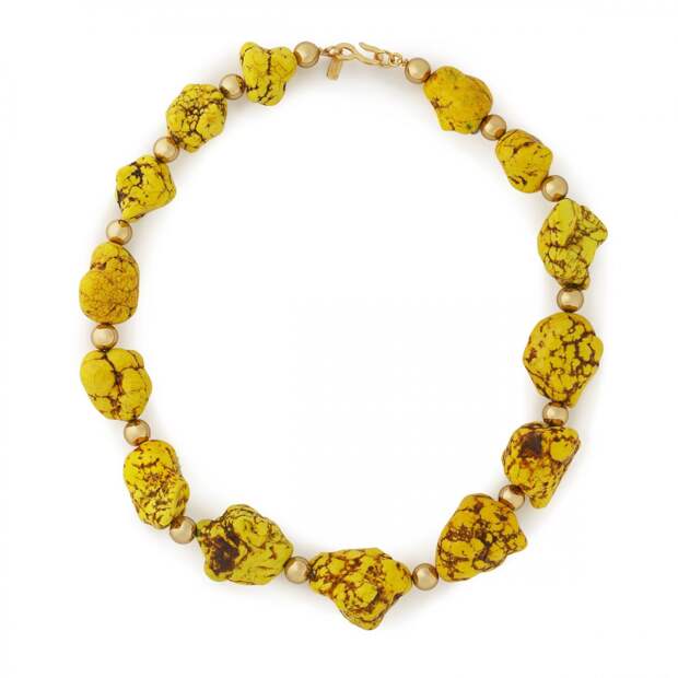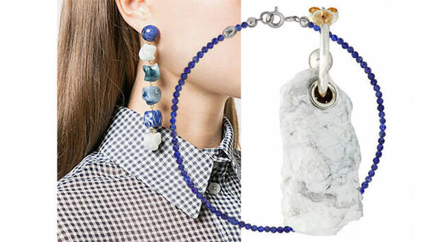 Обратите внимание на модели из натуральных камней, чей цвет и иногда форма сохранены в первозданном виде. Это могут быть янтарь, изумруд, бирюза, лазурит, солнечный камень и другие. Например, серьга Proenza Schouler сделана из необработанного камня. А браслет российской марки Agnes Waterhouse состоит из таких мелких бусин, что не будет чувствоваться на руке.