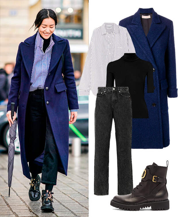 Рубашка BALENCIAGA, 53 099 руб.; водолазка THEORY, 14 186 руб.; джинсы GANNI, 10 782 руб.; пальто MARNI, 156 684 руб.; ботинки VALENTINO, 53 335 руб.