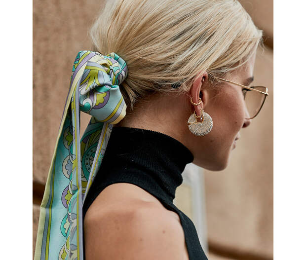 Широкая лента может быть любой расцветки, с самыми разными принтами - можно обзавестись несколькими и подбирать под каждый образ разную. Вплетать в косу, обрамлять высокий хвост или повязывать вместо ободка - воплощайте любые свои фантазии.
