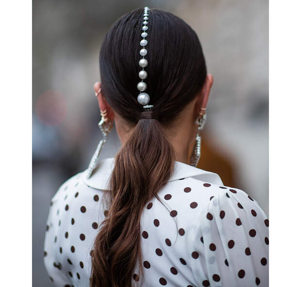 Шпильки для пучка, резинки и заколки с жемчужинами моментально преобразят любой образ, придав ему особого шарма и нарядности. Можно ограничиться одной или двумя деталями, а можно украсить ими всю голову - например, если соберетесь на вечеринку с особым дресс-кодом.