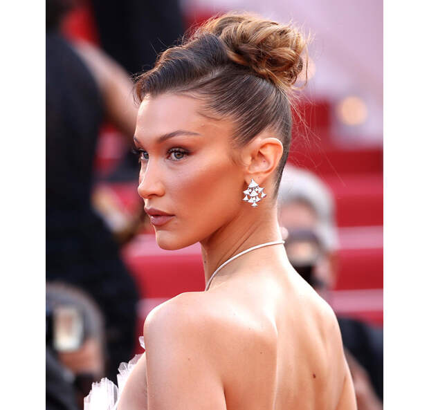 По 90-м сходит с ума Белла Хадид - в последние месяцы все ее прически вдохновлены именно тем временем. Советуем не отставать и выходить в свет с "пучком выпускницы" - волосами, заколотыми от шеи наверх.