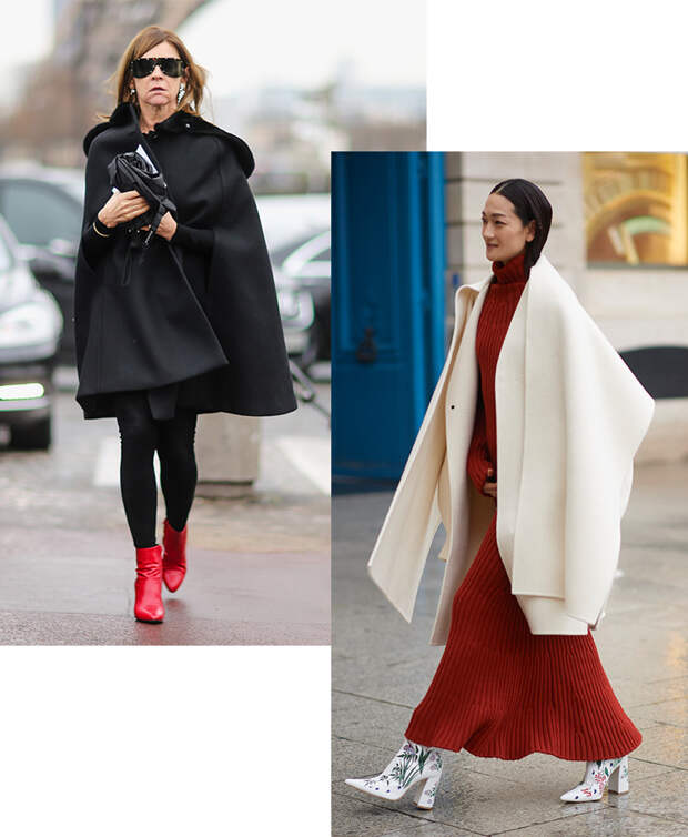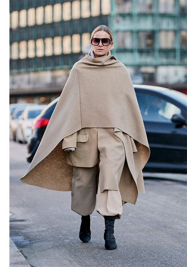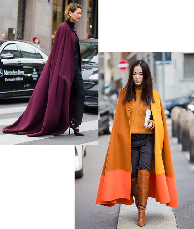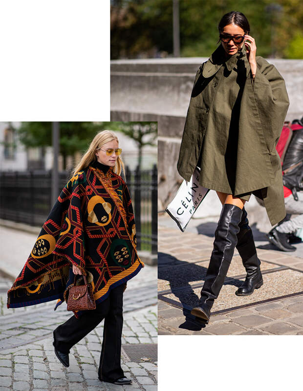 Весенний гардероб - это не только бесконечные вариации пальто и плащей. Берите пример с завсегдатаев Недель моды, которые приручили в новом сезоне объемный кейп. В особенно промозглые дни эту крайне уютную вещь можно носить поверх шерстяного жакета или свитера крупной вязки.