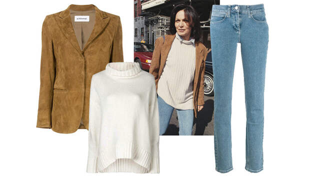 Нью-Йорк, январь 1995-го. Диана фон Фюрстенберг гуляет в солнечный день по Манхэттену: папарацци подловили ее в районе Вест-Вилладж в небрежном, но таком стильном образе. Светлые узкие джинсы, кремовый объемный свитер, из-под которого слегка выглядывает высокий воротник рубашки.