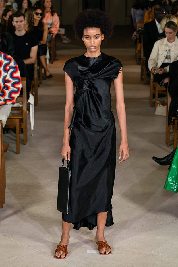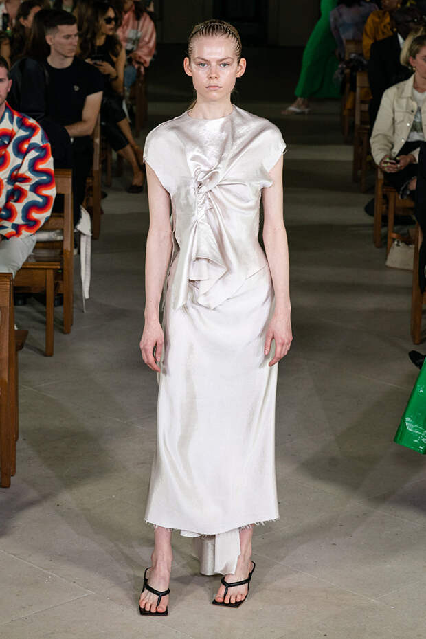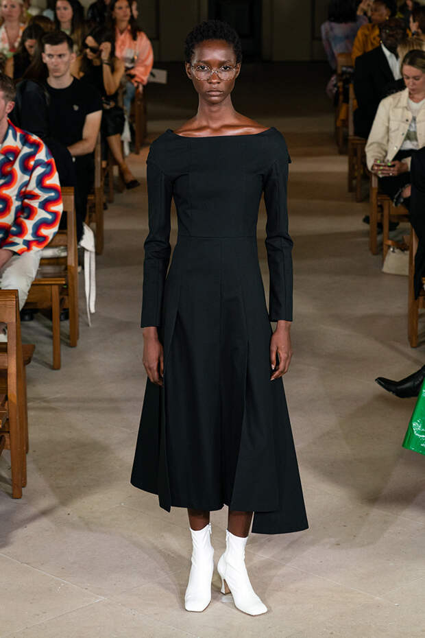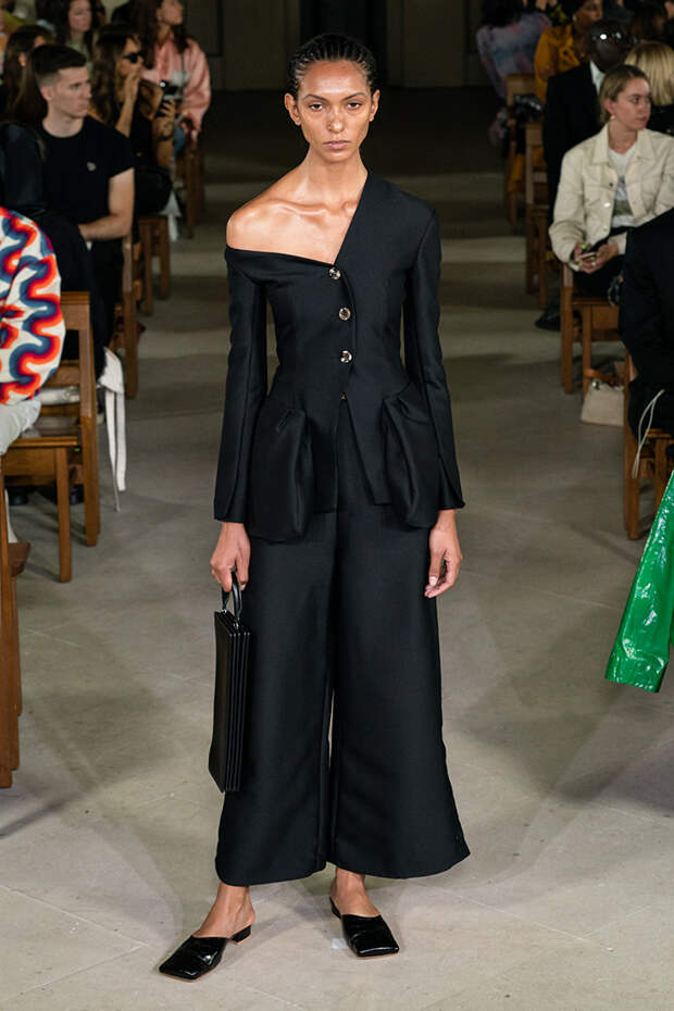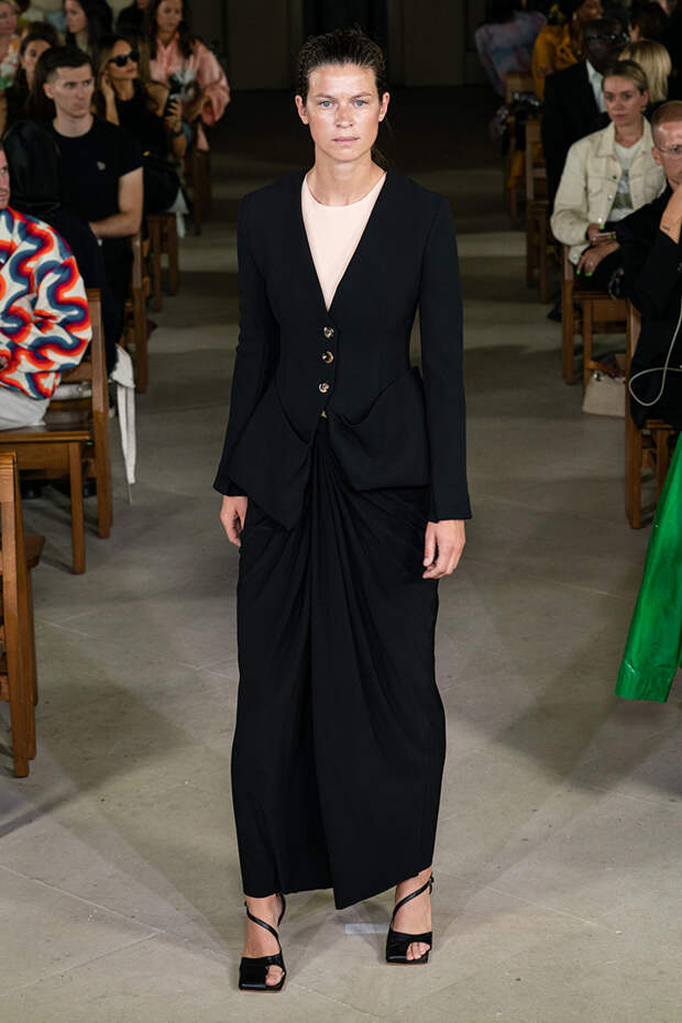 В новой коллекции Натальи Алавердян коды аристократического костюма снова прорываются в повседневную жизнь, а границы между вечерним и дневным дресс-кодами, между строгим и откровенным окончательно размываются. Поэтому рядом с платьями в пол, длинными юбками и асимметричными жакетами, сидящими точно по фигуре, оказываются, например, такие же костюмы — но целиком прозрачные.