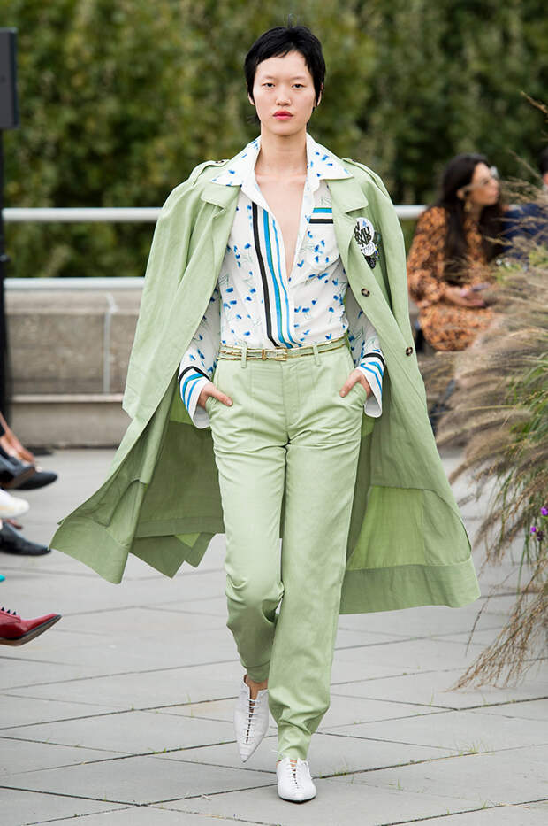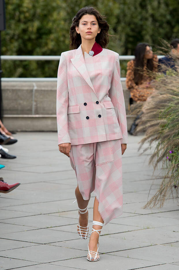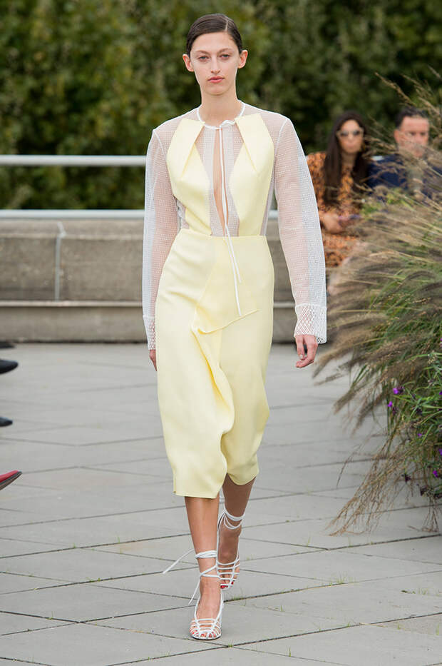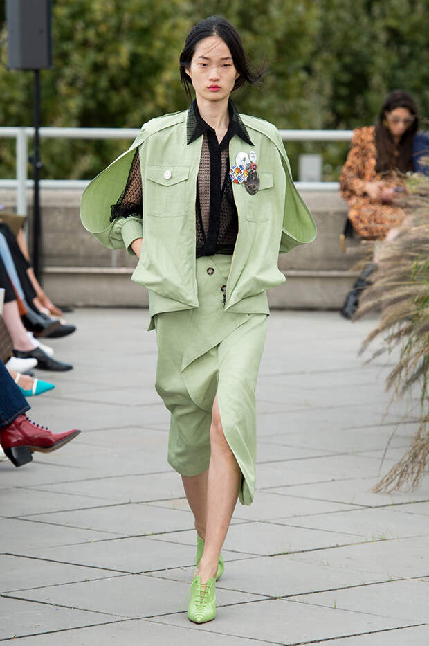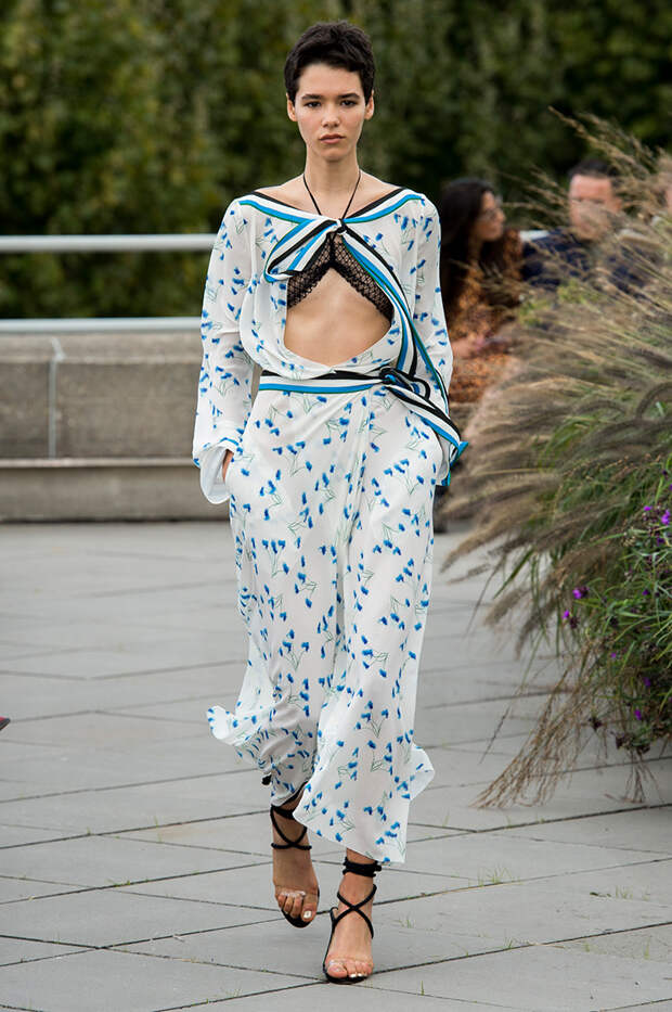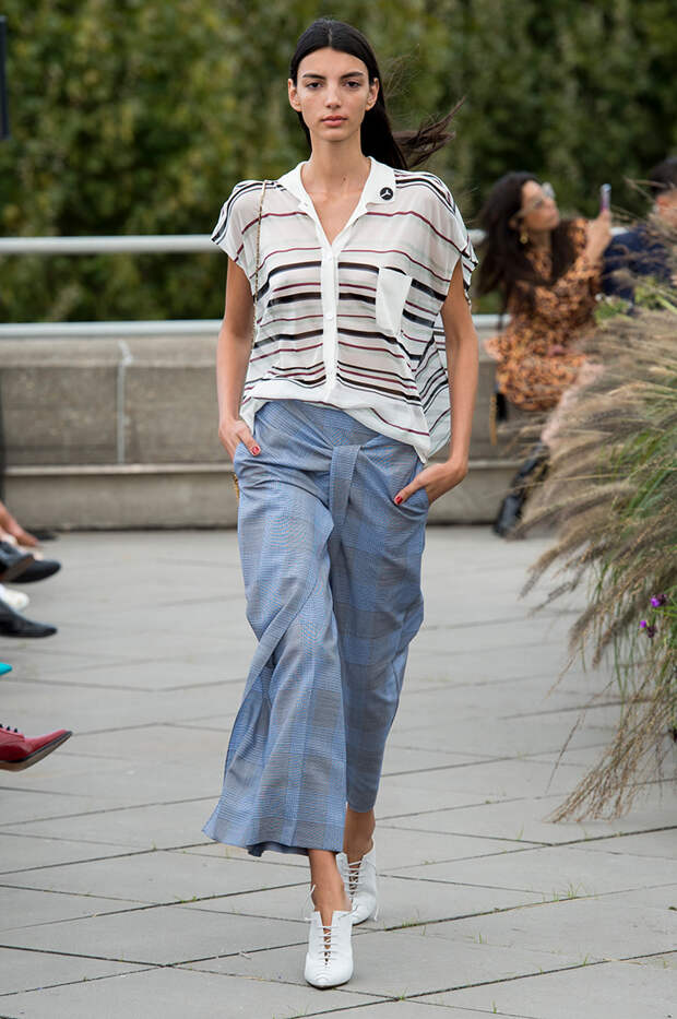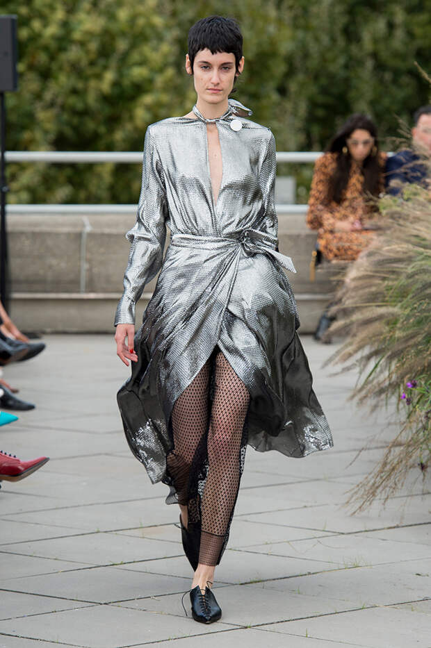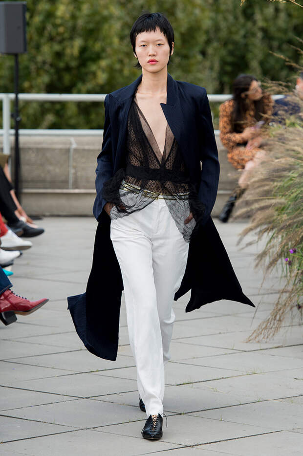 Следующей весной и летом можно ограничиться, по мнению Муре, тонкими натуральными материалами пастельных оттенков. Из них получились летящие платья с глубоким вырезом и разрезами на плечах, а также с ассиметричным подолом (что напоминает о нарядах нимф), костюмы прямого кроя и свободные юбки почти без деталей. Из прошлых коллекций дизайнер решил позаимствовать сеточку, из которой сделаны просвечивающие топы и боди. Муре, как и Джонатан Андерсон, и Виктория Бекхэм, сделал легкие расслабленные наряды, которые как бы говорят, что пора отдохнуть от излишества и эпох и наслаждаться тем, что можно носить одежду без оглядки на тенденции.