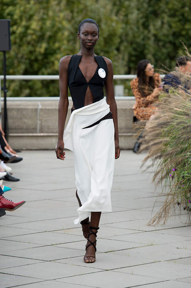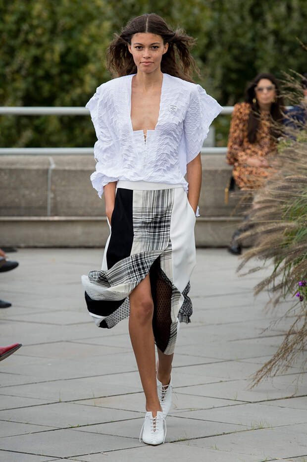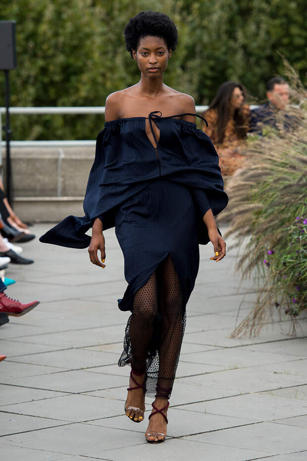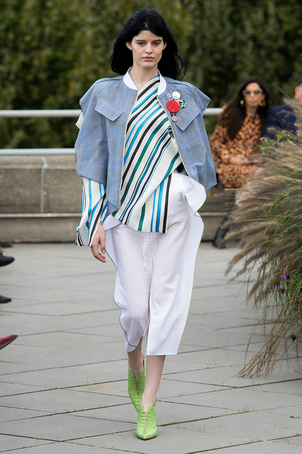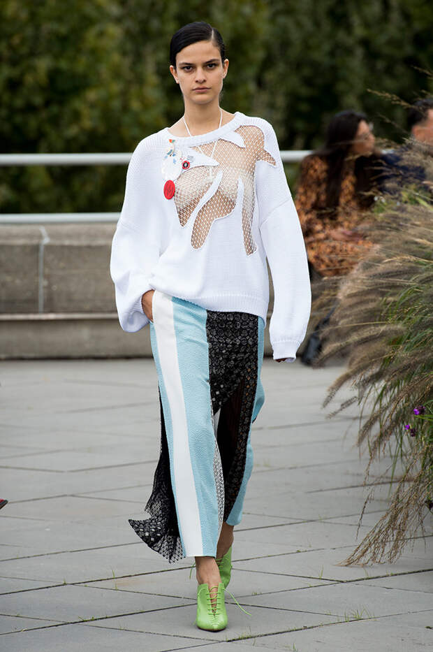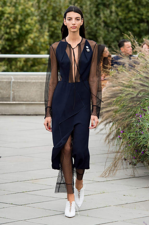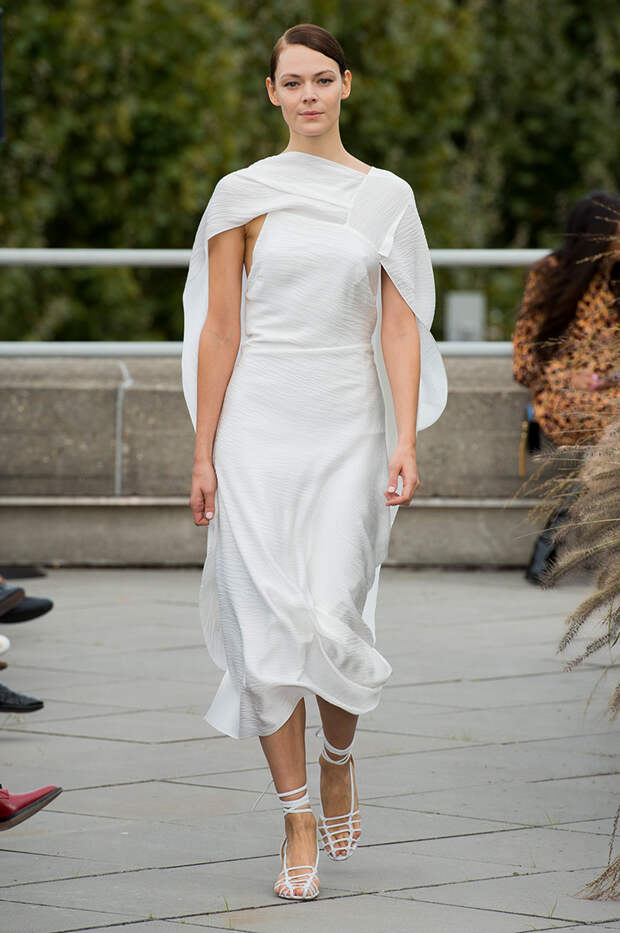 Следующей весной и летом можно ограничиться, по мнению Муре, тонкими натуральными материалами пастельных оттенков. Из них получились летящие платья с глубоким вырезом и разрезами на плечах, а также с ассиметричным подолом (что напоминает о нарядах нимф), костюмы прямого кроя и свободные юбки почти без деталей. Из прошлых коллекций дизайнер решил позаимствовать сеточку, из которой сделаны просвечивающие топы и боди. Муре, как и Джонатан Андерсон, и Виктория Бекхэм, сделал легкие расслабленные наряды, которые как бы говорят, что пора отдохнуть от излишества и эпох и наслаждаться тем, что можно носить одежду без оглядки на тенденции.