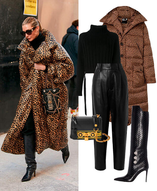 Водолазка PROENZA SCHOULER, 38 877 руб.; брюки ANINE BING, 52 721 руб.; пуховик BRUMAL, 81 110 руб.; сумка VERSACE, 104 713 руб.; сапоги BALMAIN, 71 121 руб.