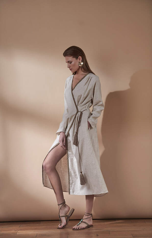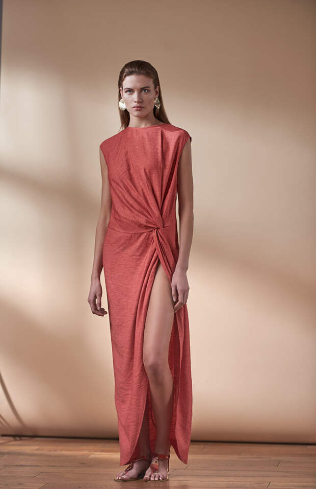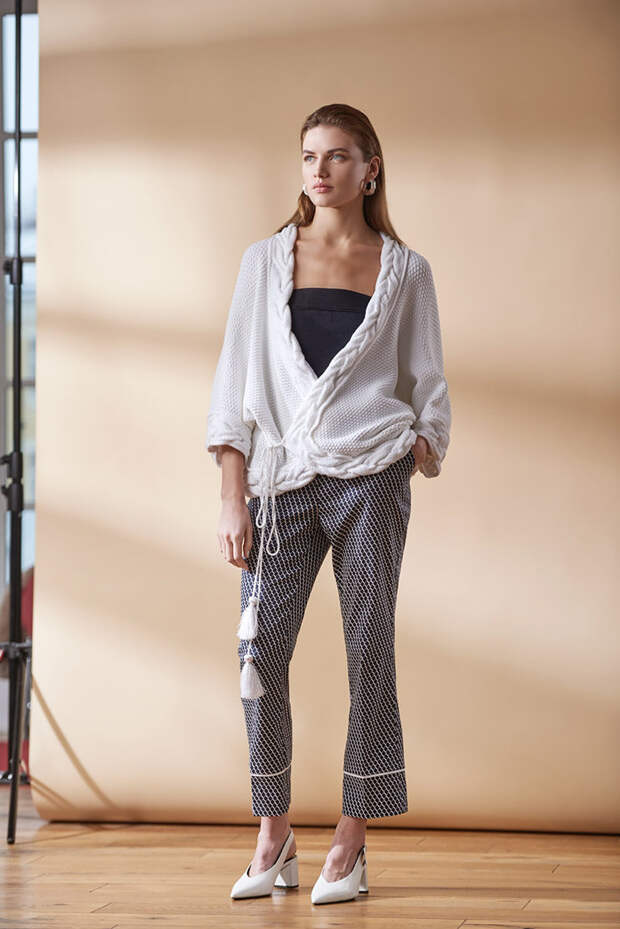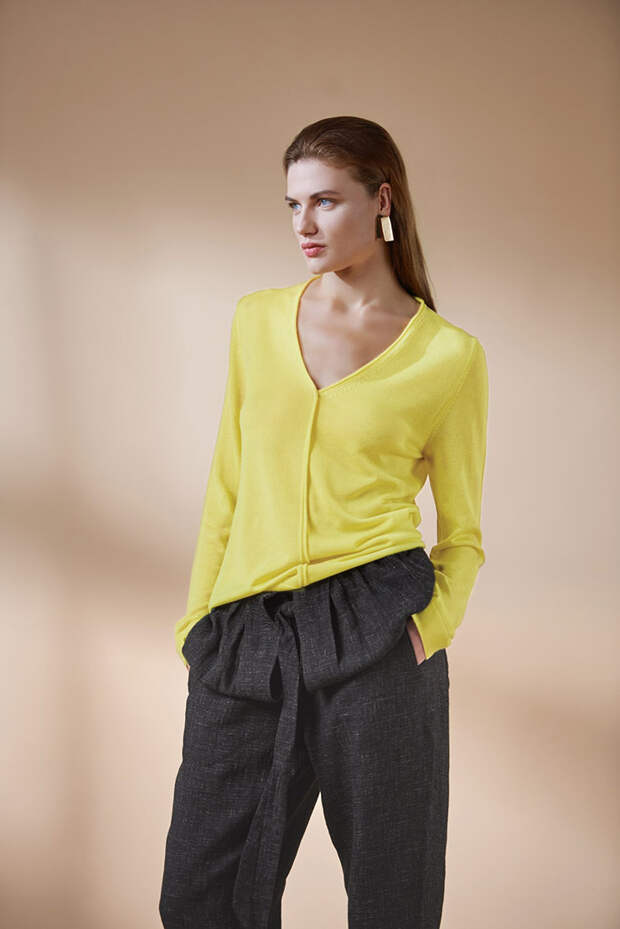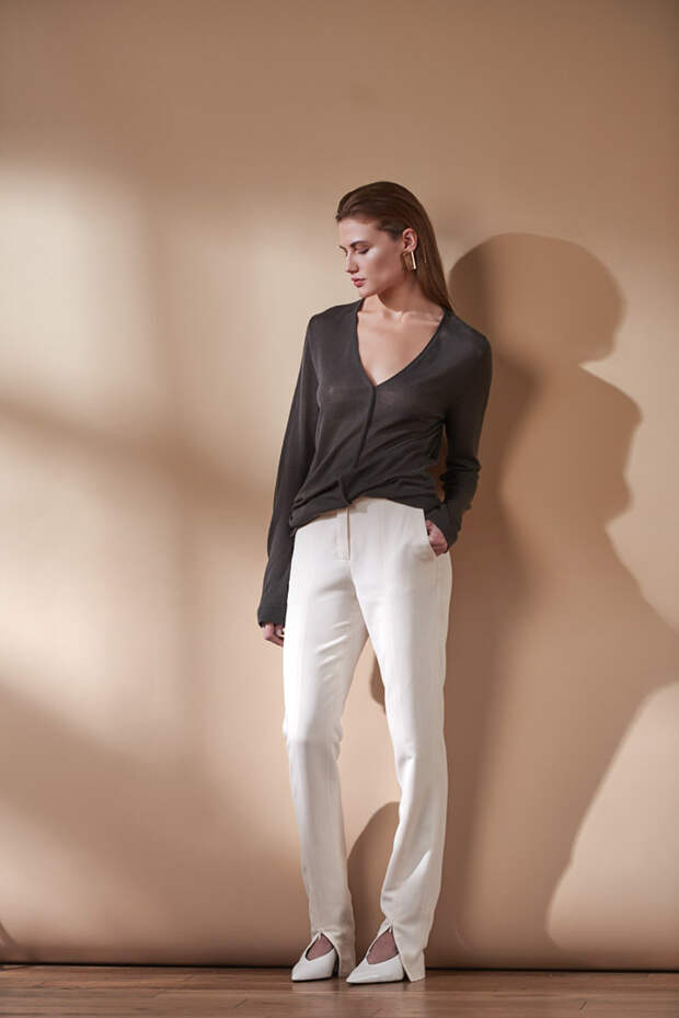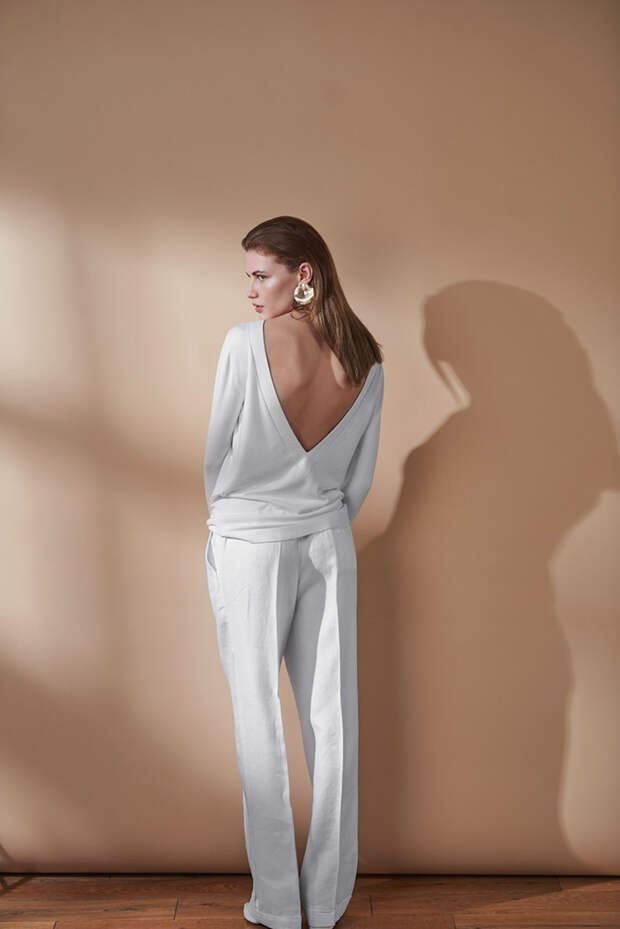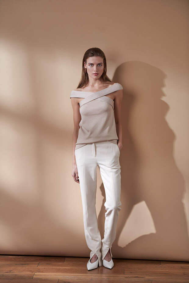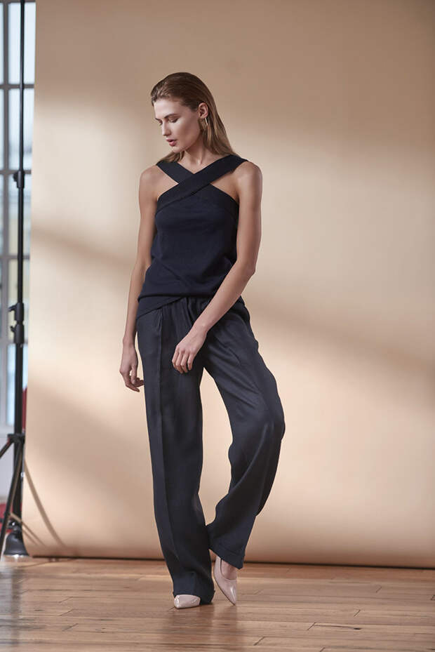 Прямые брюки с разрезами, так горячо любимые Викторией Бекхэм за эффект «удлинения» ног, или широкие в базовых цветах YANI предлагают носить в комплекте с высококачественным трикотажем из итальянской пряжи, особой гордостью марки. И выглядит это отнюдь не скучно благодаря оригинальным фасонам - если джемпер, то с глубоким сексуальным разрезом на спине, если топ, то с перекрестными деталями на груди, подчеркивающими хрупкие ключицы. Тем, кто собирается в отпуск, стоит присмотреться к платьям из коллекции. Хлопковый коралловый сарафан с внушительным вырезом достоин прогулки по набережной Круазетт, а платье-халат из льна так и захочется запечатлеть на фоне пейзажей Миконоса. За натуральность отвечают не только ткани, но и цвета. За основу взяты белый, песочный, темно-синий, коричневый. Самым ярким предметом стало алое асимметричное мини с плечами в стиле 70-х, которое подойдет для романтичного свидания или вечеринки на крыше.