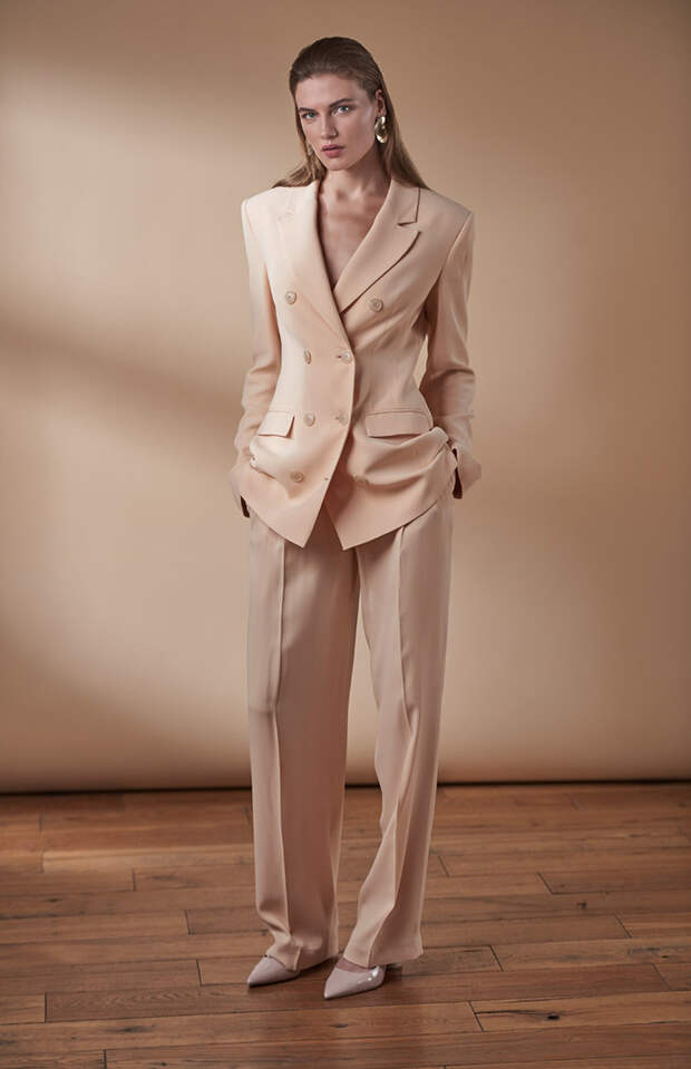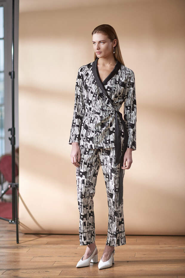 Особенно стоит обратить внимание на ультрамодный принт зебра: анималистические узоры не сдают позиций в этом сезоне. Беспроигрышная формула «и в пир, и в мир» применима к большинству вещей: чего стоит брючный костюм пастельного персикового оттенка или комбинезон идеального кроя.