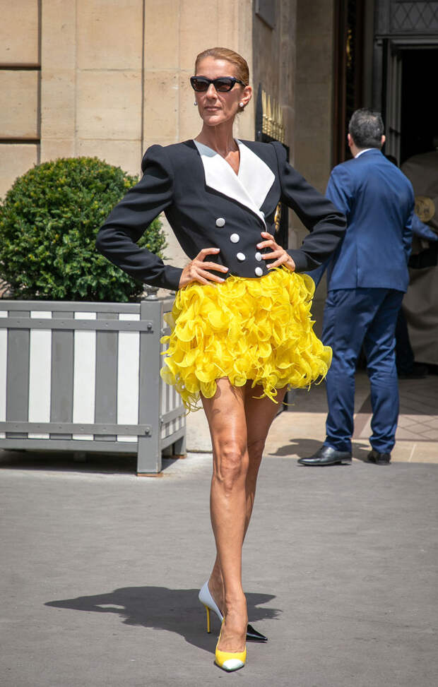 Певица не устает радовать поклонников экстравагантными выходами в Париже. Селин снова играет с оригинальными образами: на этот раз она появилась в лодочках от Jimmy Choo разного цвета. Кажется, звезда строго придерживается правила трех цветов в одном наряде, успевая ловко комбинировать стили.