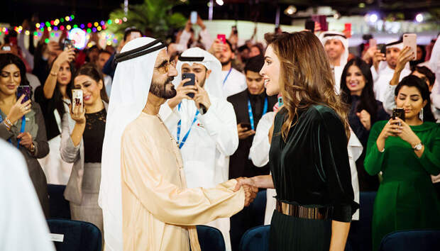 Не только супруга испанского короля испытывает теплые чувства к масс-маркету, королева Рания тоже вышла в свет в одежде от бюджетного бренда. На встрече с шейхом Объединённых Арабских Эмиратов супруга короля Иордании появилась в комплекте глубокого изумрудного оттенка от Zara: бархатном топе и плиссированных колютах с широким металлизированным ремнем.