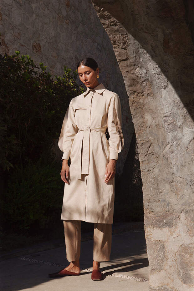 Дизайнер Лана Кузнецова фокусируется на производстве верхней одежды из высококачественных материалов, при этом не использует натуральную кожу и меха, заменяя их искусственными. В коллекции OCHI весна-лето 2019 преобладают тренчи, пальто и жакеты — все в минималистичном стиле и теплой цветовой гамме.