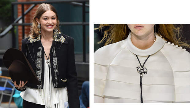 Мы по галстуку, если он когда-нибудь совсем пропадет с радаров, скучать не будем точно - ну разве что по манере звезд нулевых носить его со всем подряд, как Аврил Лавин носила его с майками. Это было, по крайней мере, забавно!Но для одного галстука этой осенью можно сделать исключение. Bolo tie - и не галстук вовсе в классическом понимании. Это скорее ожерелье - шнурок, перекинутый через шею и скрепленный регулируемой застежкой. И виновата в возвращении этой странной штуки мода на Дикий Запад - такие носили ковбои. Думаете, что этот шнурок выглядит нелепо? А вот Николя Жескьер, добавивший его в осеннюю коллекцию Louis Vuitton, так не считает. И его мнению можно довериться.