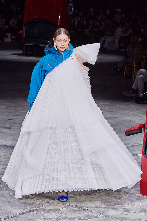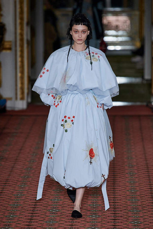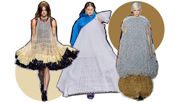 А потом поддержали его и другие. Те же округлые формы были замечены потом в коллекциях Louis Vuitton, Nina Ricci, Simone Rocha, Noir Kei Ninomiya и Oscar de la Renta. Одно из самых ярких выступлений получилось у Вирджила Абло: его огромные бальные платья мы вспоминаем до сих пор.